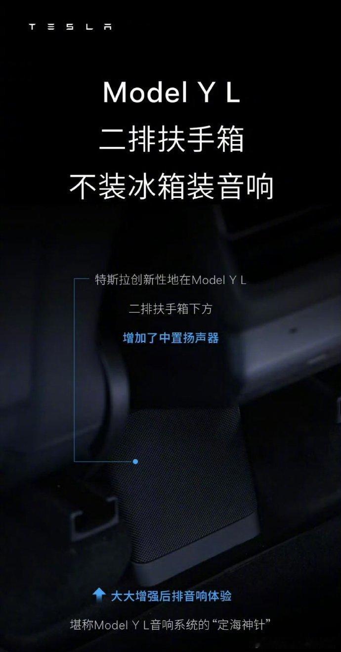 特斯拉Model Y 这次L新增二排扶手音响这个动作,是不是预示着以后汽车音响不仅和彩电、冰箱、大沙发三大件齐名,甚至要变成座舱体验的重点关注对象 ?