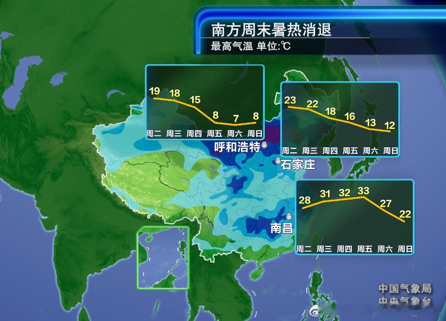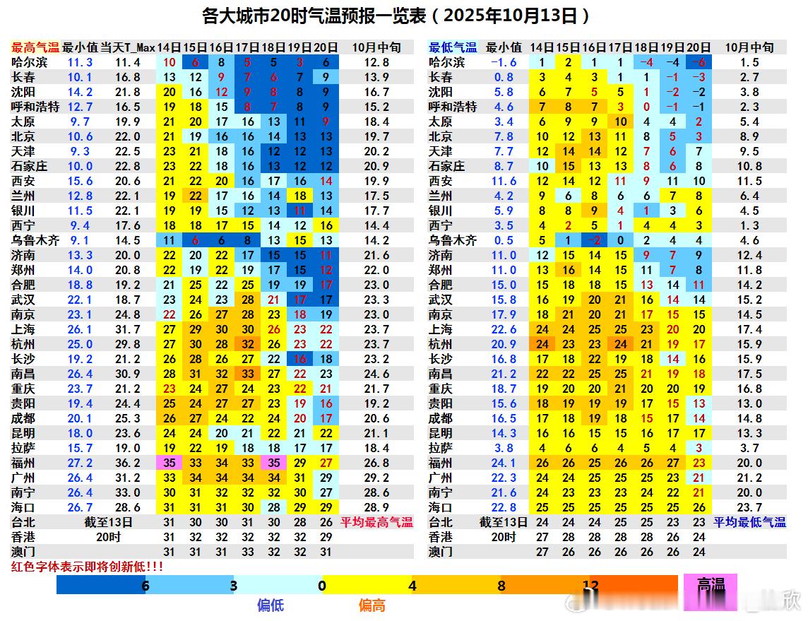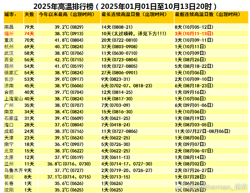 未来福州在14日和18日还报出高温。如果18日在冷空气到来前,锋前增温使得高温兑现,福州将打破省会首府直辖市最晚高温日(原纪录为南宁,1964年10月14日)。不管南北近期气温如何波动,节奏不同,周末到下周初,都会降温。