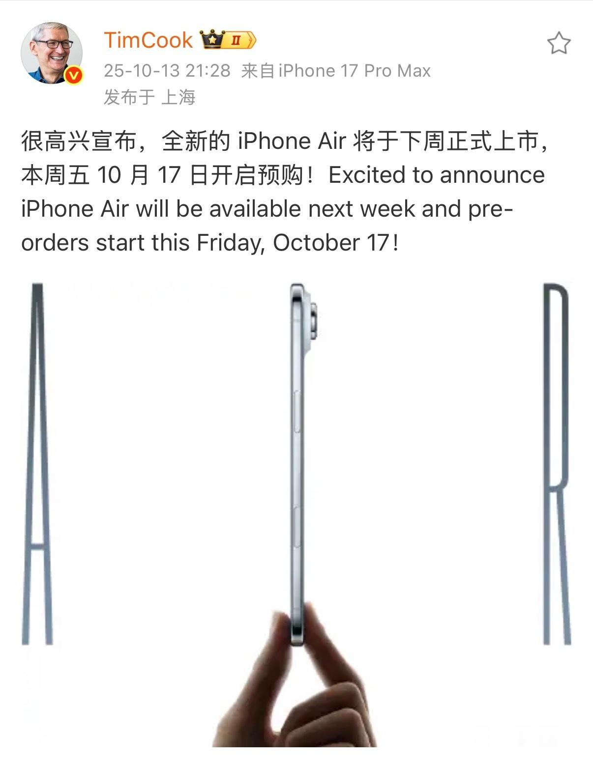 国行版iPhone Air,来了!由三大运营商联合推出~[捂嘴哭]