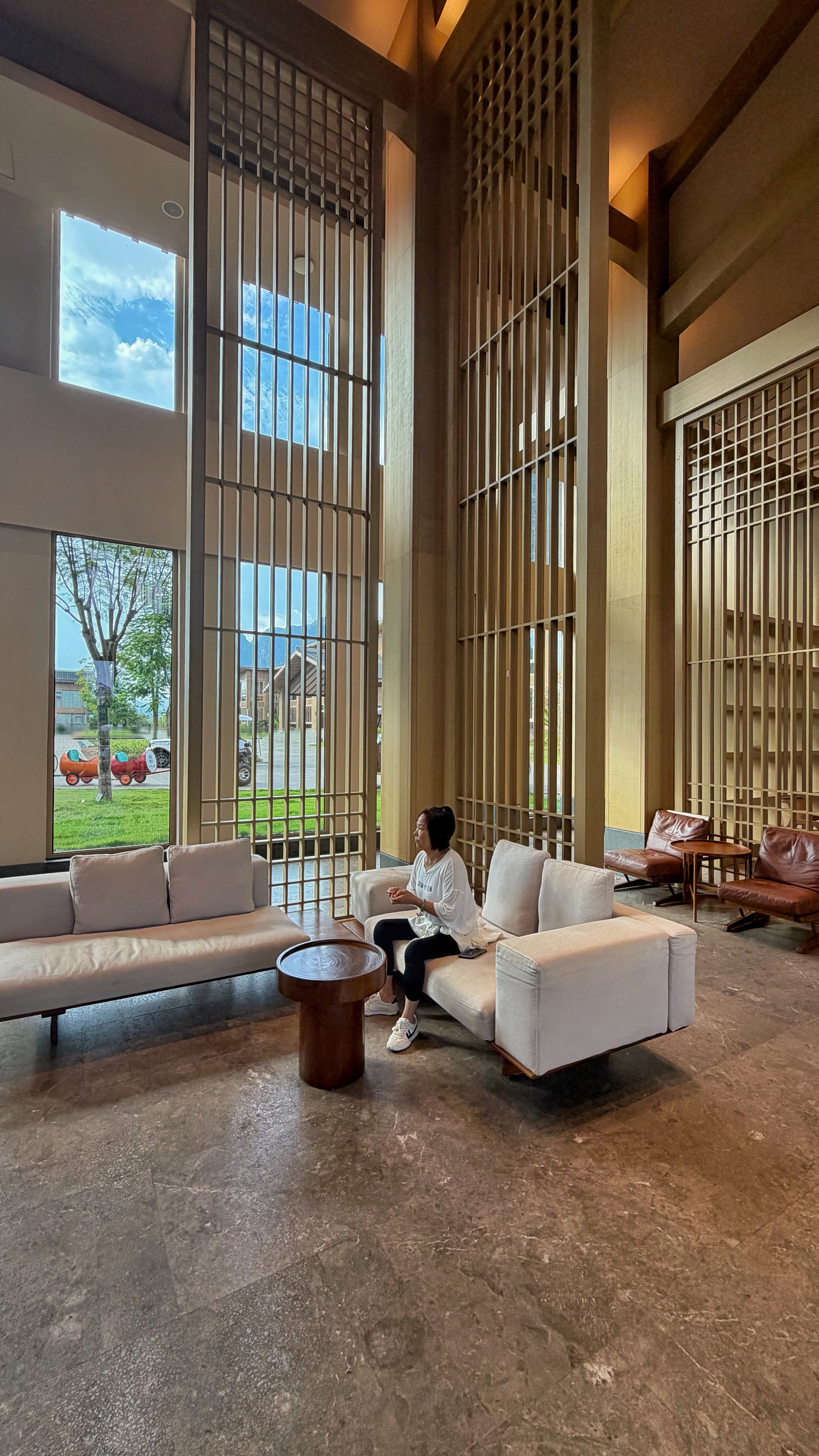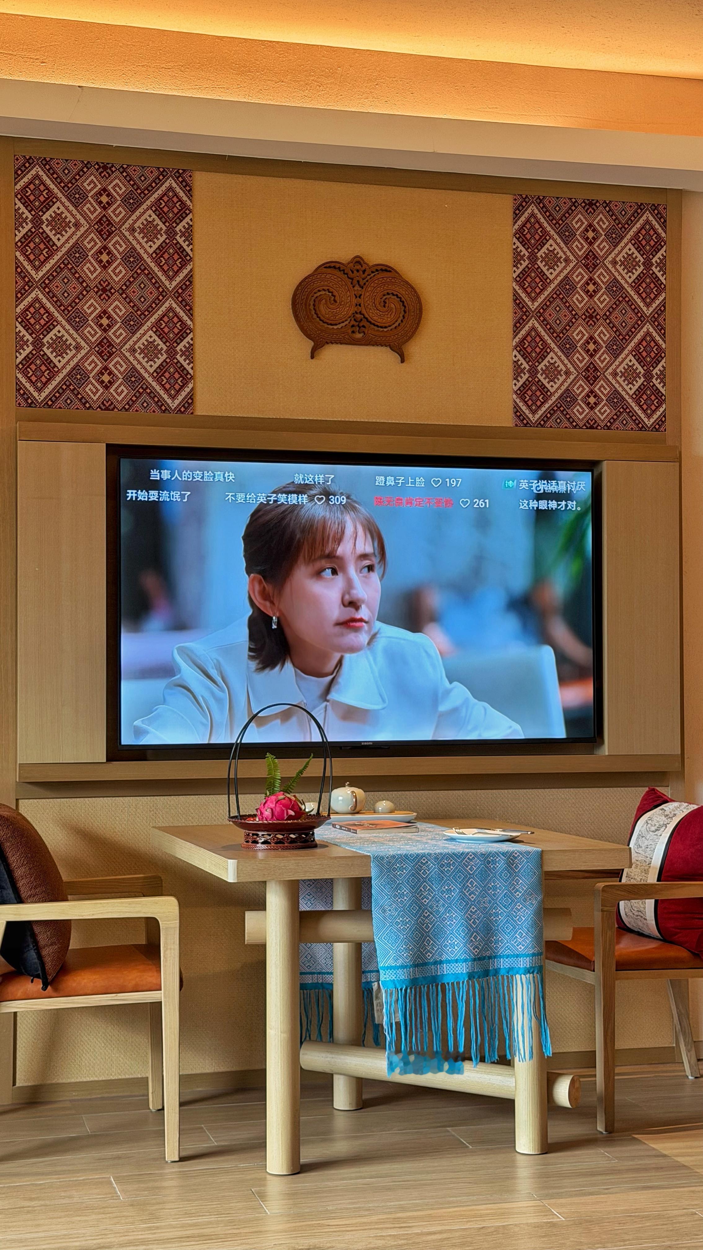 龙州观堂是老糖厂改的,红砖墙混着壮乡元素,大气又有味道。推窗见左江山水,院里柚子树洒光影、荷花池花谢了,但不影响酒店处处是景。