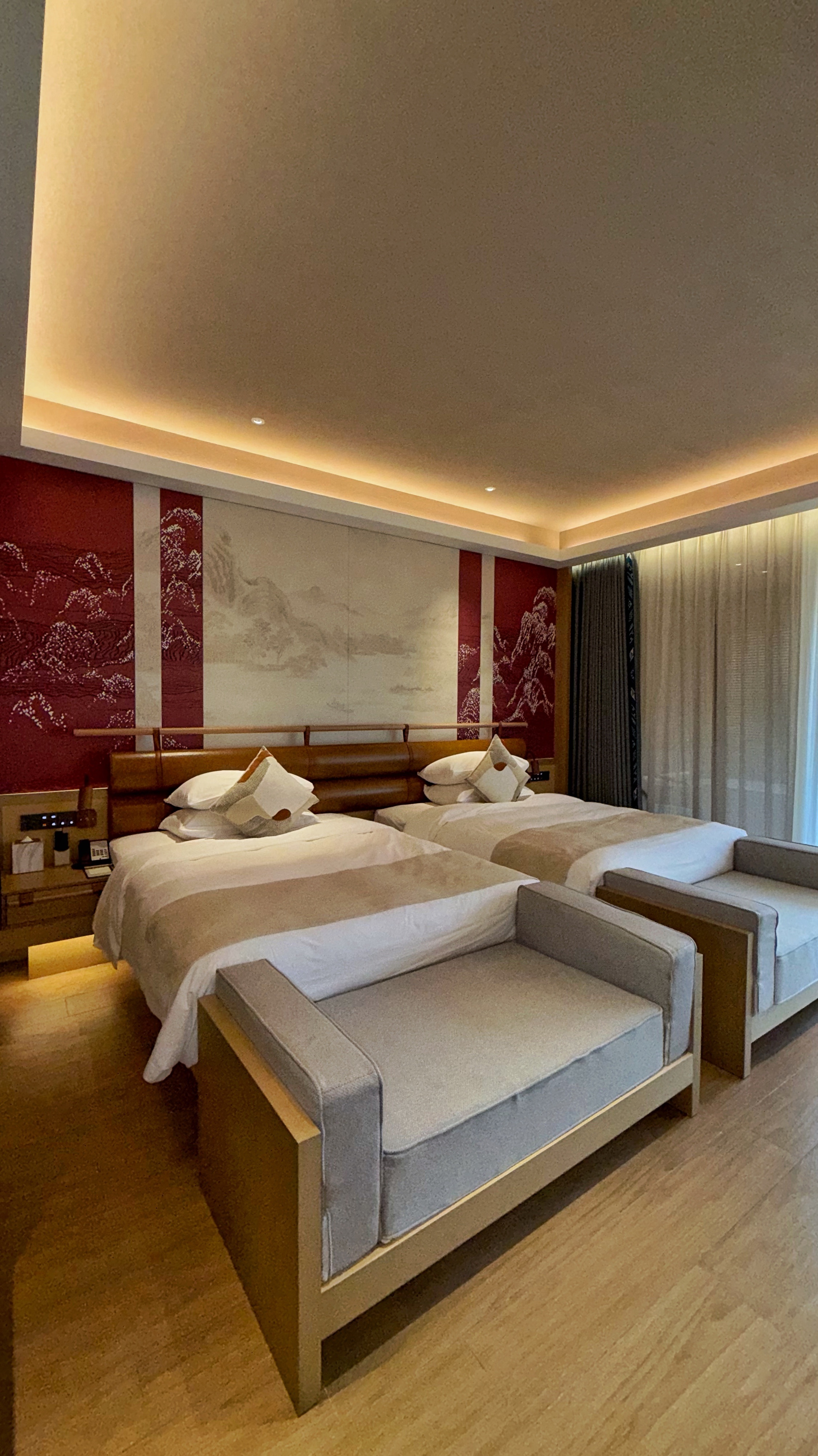 餐厅外就是喀斯特山景,吃饭都像享受。房间宽敞亮堂,百叶窗光影特治愈,公区跟艺术馆似的,露台草坪、水池、壮寨……太多可讲了。房价1000+,但这环境和格调,真心值!广西旅游攻略