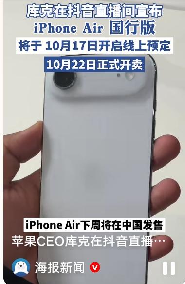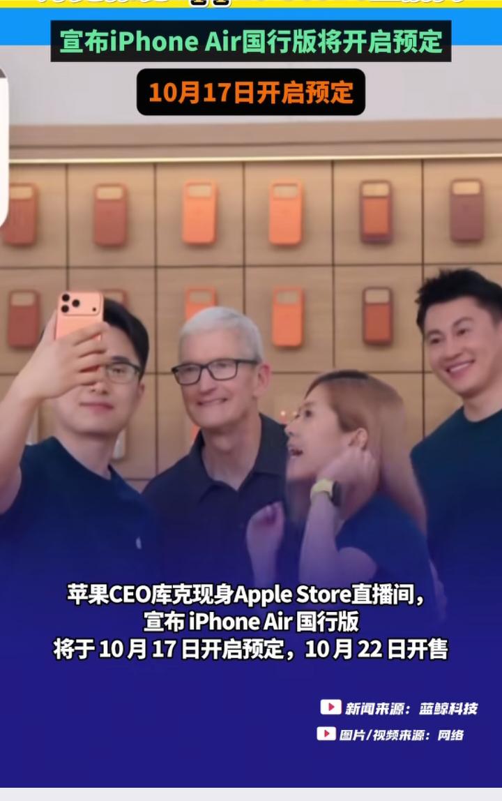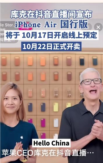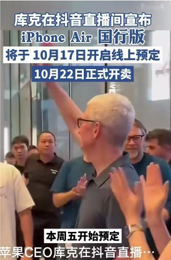 库克来抖音直播了 在科技界备受瞩目的一个夜晚,10月13日的晚上,一场引发热议的直播活动在中国互联网圈内掀起了轩然大波。苹果公司CEO蒂姆·库克亲临抖音平台,出现在官方的App Store旗舰店直播间,为广大用户带来了令人振奋的消息。这不仅仅是一场普通的现场直播,更是一场关于未来科技生活的盛宴,让无数苹果粉丝和科技爱好者们充满了期待与激情。 作为全球最具影响力的科技企业之一,苹果公司一直以来都以其创新、品质和用户体验闻名于世。而此次库克亲临抖音直播间,实属难得。这不仅彰显了苹果公司对中国市场的重视,也显示了其在数字营销和用户互动方面的创新尝试。直播当晚,数百万用户同时在线,屏幕前的热情高涨,大家都在期待着这场充满惊喜的直播。 库克身穿简洁的深色西装,面带亲切的笑容,向现场和屏幕前的观众们表达了感谢。直播中,他详细介绍了苹果公司近期的战略布局、创新产品以及未来的发展方向。而最令人激动的消息,莫过于他宣布苹果即将推出一款全新的产品——苹果iPhone Air,并表示这款产品即将在中国市场正式亮相。 “轻巧、时尚、强大”——这是苹果公司对新款iPhone Air的定位。随着智能手机市场的不断发展,用户对轻薄、便携的手机需求日益增加。苹果公司此次推出的iPhone Air,正是顺应这一潮流的杰作。它将以更轻、更薄的机身设计,结合苹果一贯的高品质工艺,为用户带来全新的使用体验。 据悉,iPhone Air采用了最新一代的A系列芯片,性能强劲,运行流畅。同时,配备了高品质的摄像系统,支持多种摄影模式,让用户无论是拍摄日常生活还是记录旅行瞬间,都能轻松应对。此外,新机还将搭载更先进的显示屏幕,为用户带来更加细腻的视觉体验。 预售开启,期待已久的“苹果宠儿”即将登陆中国 库克在直播中宣布,苹果iPhone Air已开启预订,用户可以通过Apple官方渠道以及各大合作零售商提前预订。这一消息像一颗重磅炸弹,在社交媒体上引发了热烈讨论。众多苹果粉丝纷纷表示,期待已久的“轻巧新宠”终于要来了,迫不及待想要拥有一台属于自己的iPhone Air。 中国市场作为苹果的重要战略市场,一直以来都是公司全球布局的重点。此次iPhone Air的引入,无疑将进一步巩固苹果在中国高端智能手机市场的地位。相信随着预售的开启,苹果在中国的销售热潮也将逐步升温。 苹果公司一直以来都非常重视中国市场。无论是在产品研发、市场推广,还是售后服务方面,苹果都在不断投入资源,以满足中国消费者多样化的需求。从iPhone到iPad,从Mac到Apple Watch,苹果的每一款产品都深受中国用户的喜爱。 此次库克亲临抖音直播,宣布新产品的消息,更加凸显了苹果对中国市场的信心与期待。随着5G技术的普及,以及中国消费者对高品质智能设备的不断追求,苹果有望在未来的市场竞争中继续保持领先地位。 同时,苹果在中国的本土化布局也在不断深化。苹果在中国设立了多个研发中心,推动本土创新,与中国的科技企业展开合作,共同探索更广阔的未来科技空间。可以预见,未来苹果将在中国市场推出更多符合本地用户需求的产品和服务,为用户带来更加丰富多彩的智能生活体验。 当晚的直播,不仅仅是一次新品发布的简单宣布,更是一场关于未来科技生活方式的展望。库克用他的亲身体验和真诚分享,让全球数以百万计的用户感受到苹果对创新的执着与热情。iPhone Air的到来,代表着苹果持续追求极致的精神,也预示着我们即将迎来一个更为轻巧、智能、便捷的数字时代。 对于中国消费者而言,这不仅仅是一款新手机的上市,更是一份来自苹果的信任与期待。在未来的日子里,苹果将继续以创新推动科技进步,为用户带来更多的惊喜与便利。 让我们共同期待,随着iPhone Air的正式亮相,苹果在中国的未来将更加精彩纷呈,也让每一个热爱科技、追求品质的人们,享受到科技带来的无限可能。 抖音平台 '新品发布