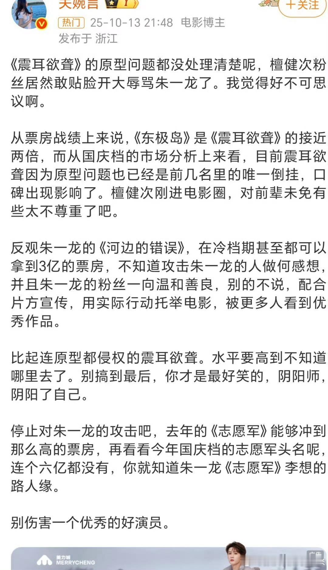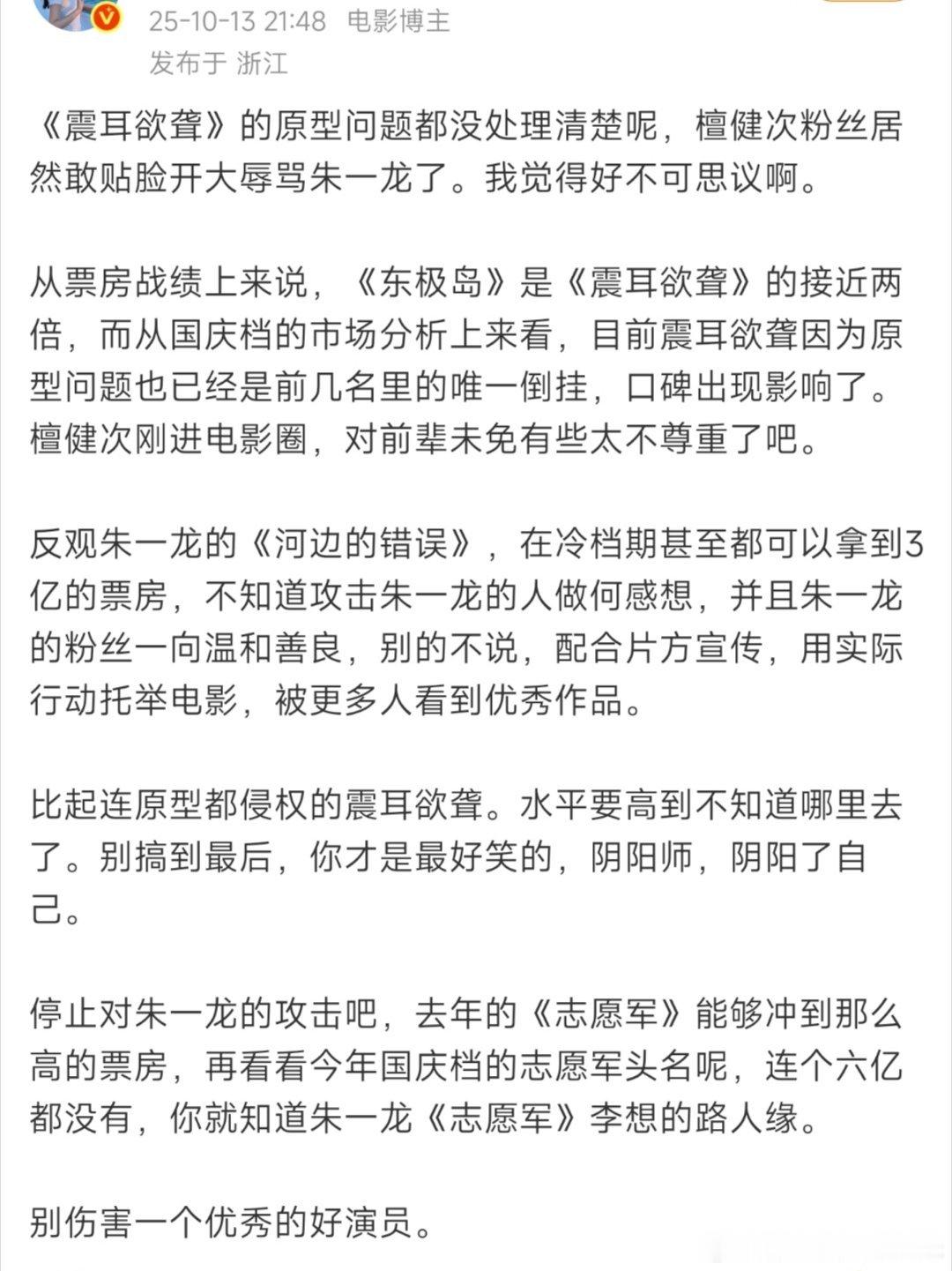 至于朱一龙粉丝说震耳欲聋这部电影跟原型律师有啥摩擦,这个跟檀健次没关系啊,他只是出演角色而已,应该管不了这么多吧[允悲]