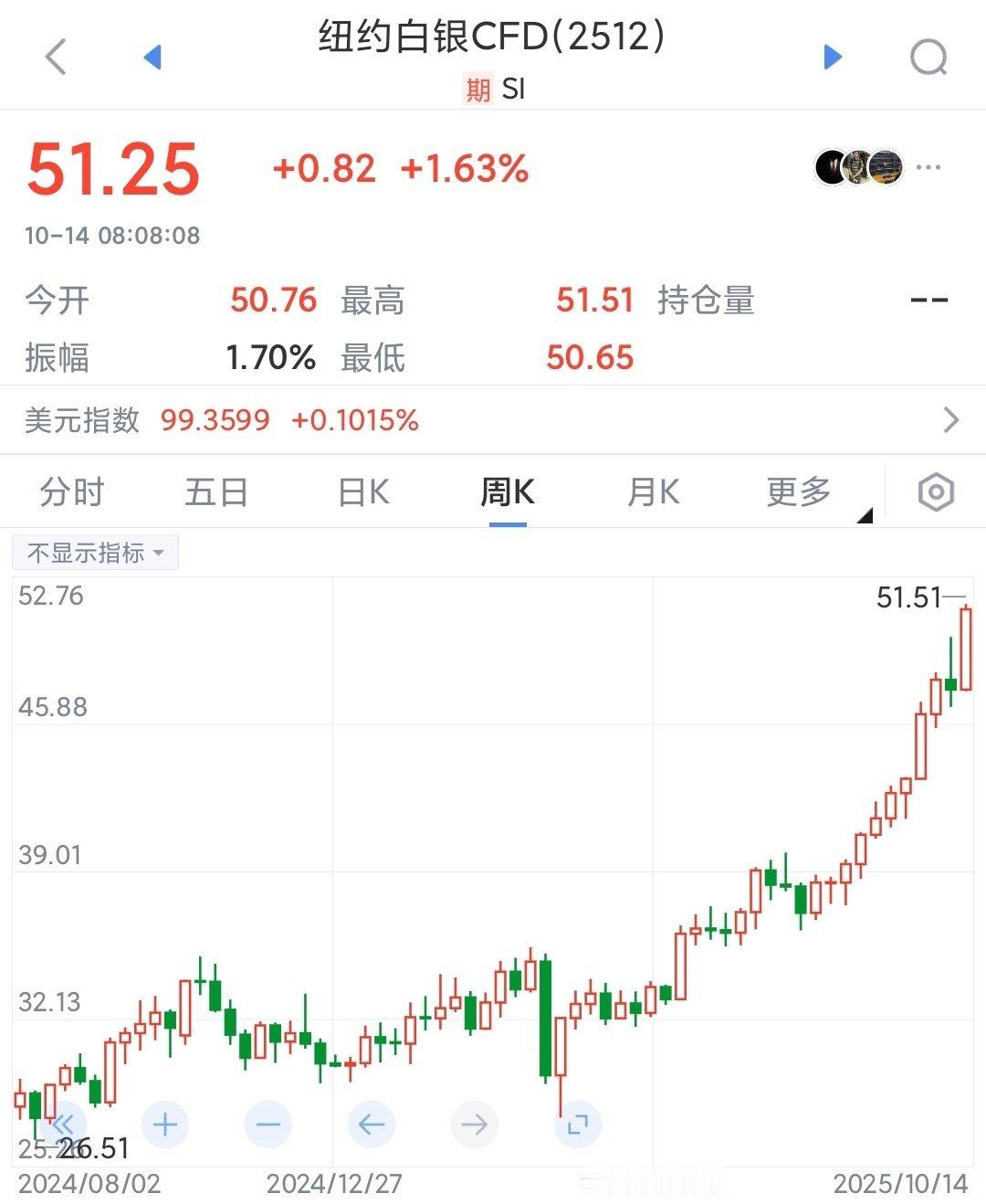 前面我还预测白银涨破50历史新高,这已经实现了,湖南白银翻倍了。目标还得观察,有说100的。