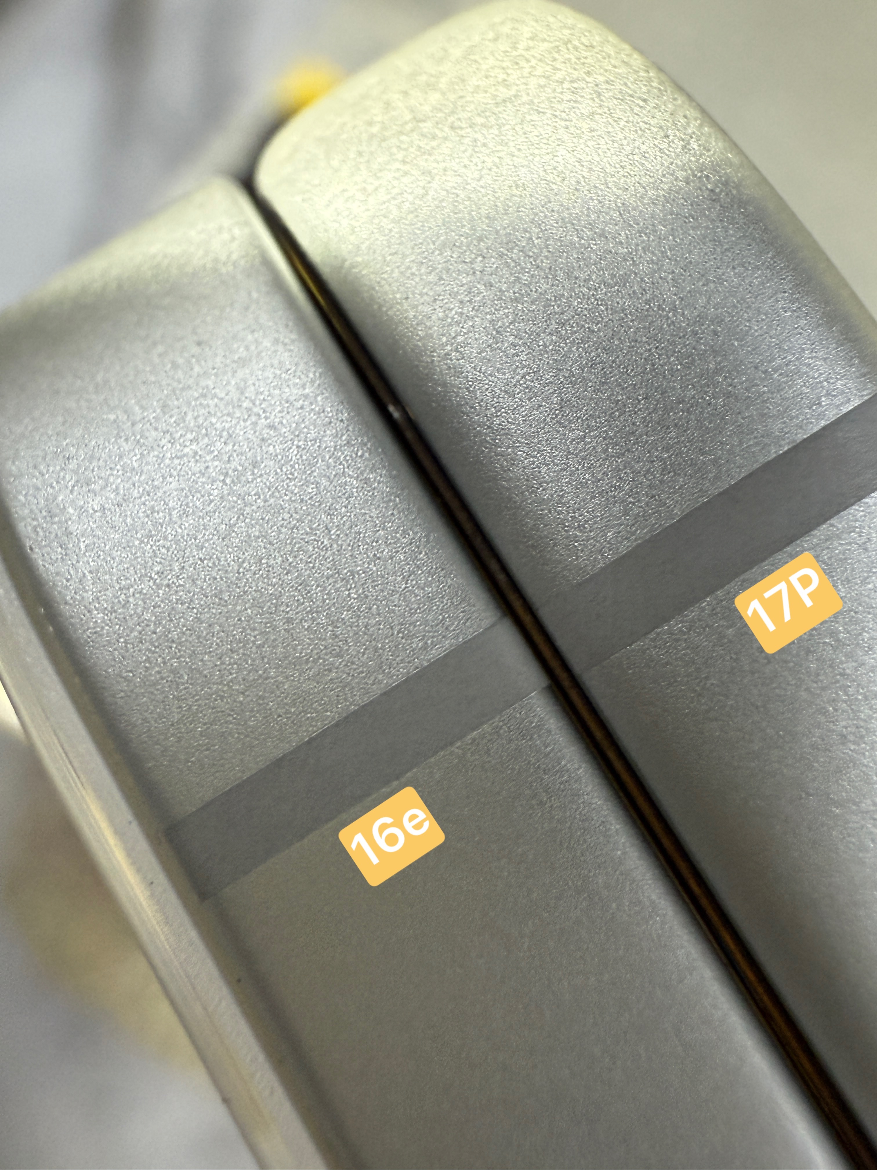 实际上热锻铝出来的 iPhone17Pro /17ProMax 表面粗糙度就是比16e 要高一个级别,那是因为喷砂粗了一些,粗一些是为了遮瑕,为什么遮瑕我估计只有苹果自己知道。
