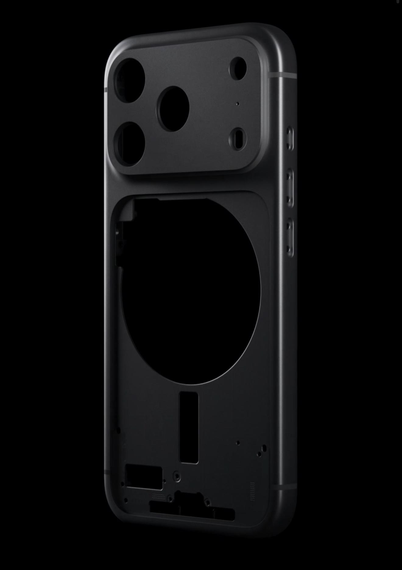 iPhone17Pro 是苹果首次将机身边框中框和一半后盖做成了一体(特别是弯曲凸起的摄像头 Deco)。