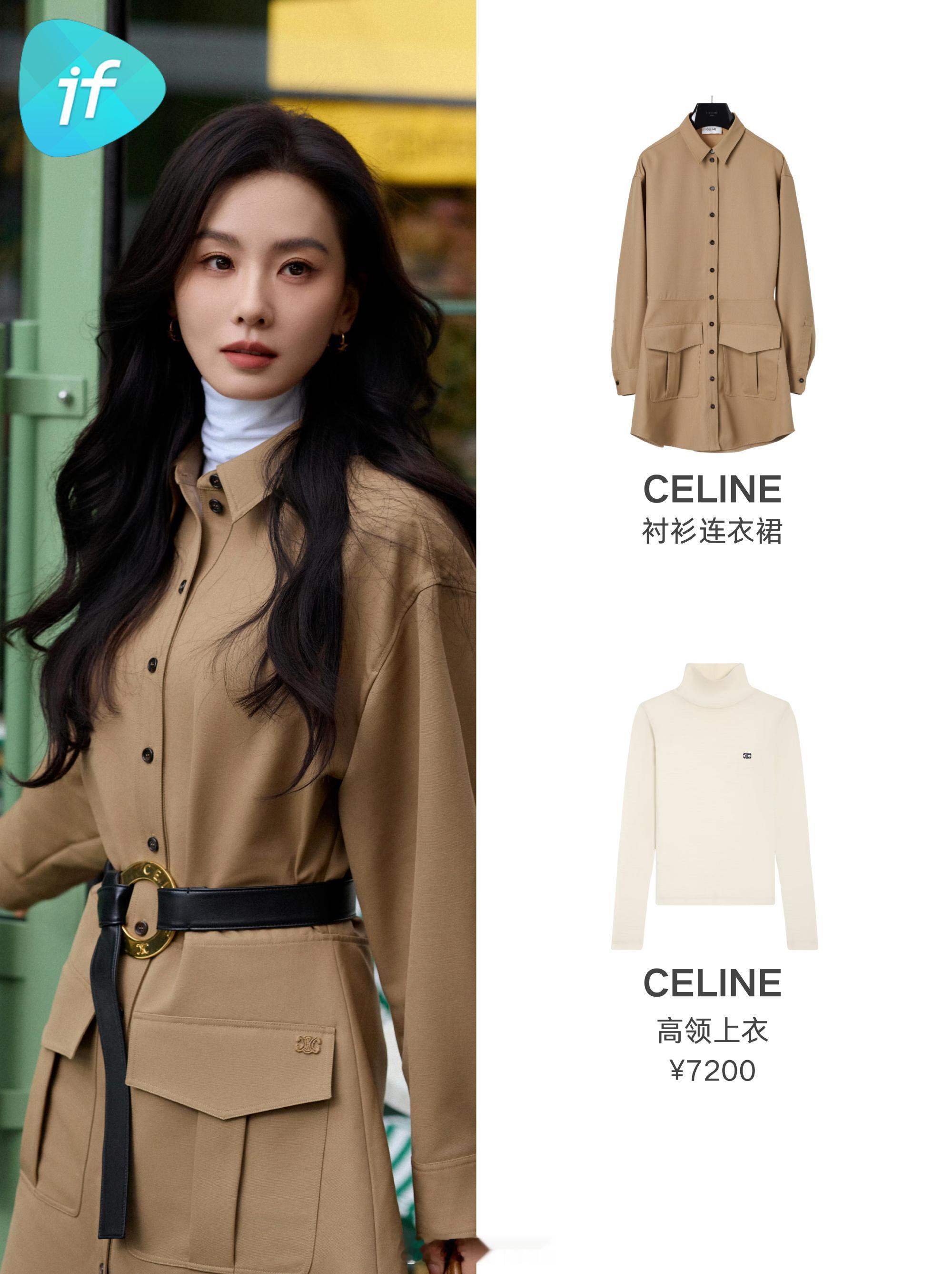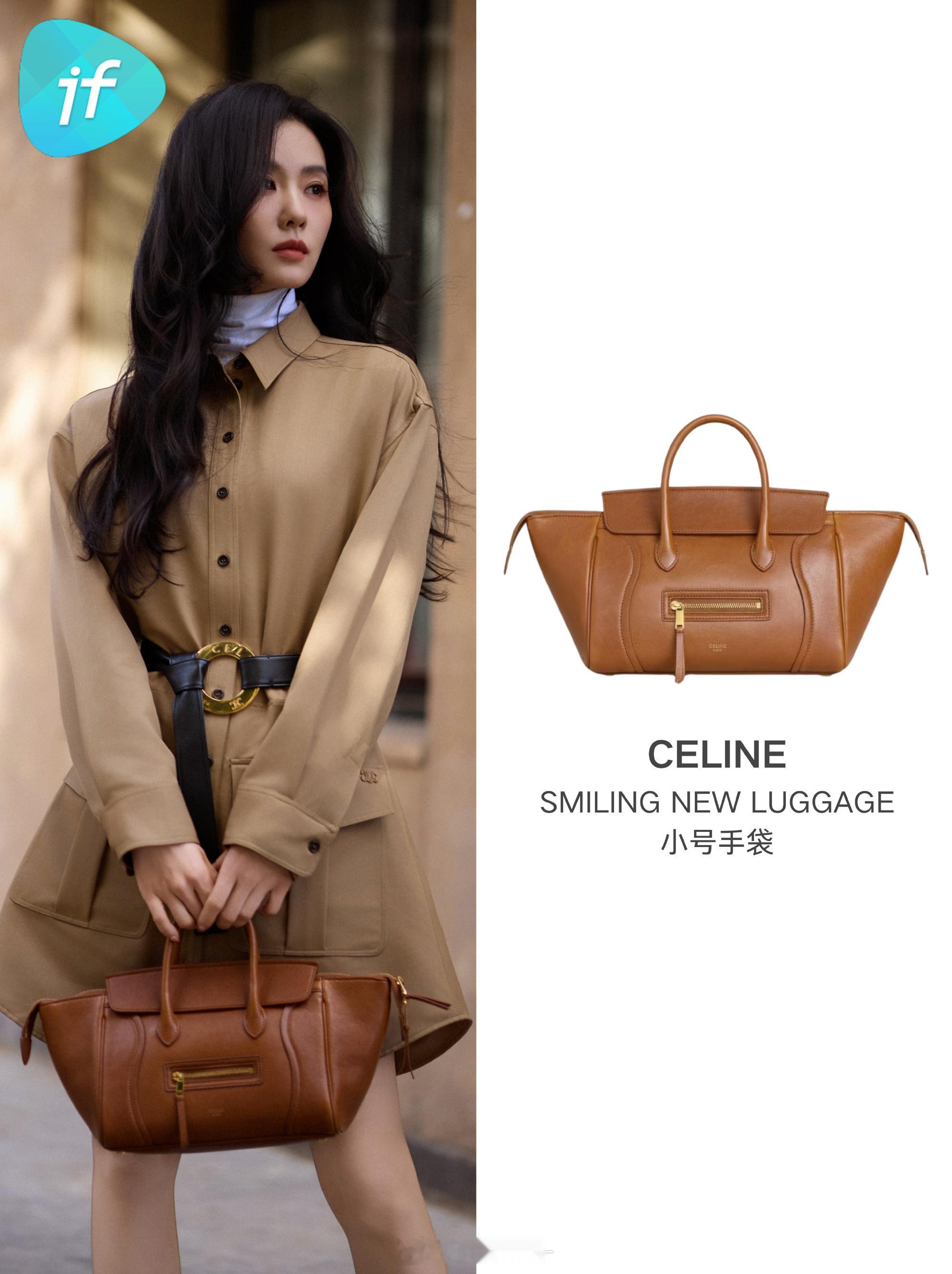一姐时尚品位没得说,驼色衬衫连衣裙内搭白色高领衫,全新小号 NEW LUGGAGE 笑脸包,色调和全身穿搭和谐呼应,是行走在巴黎街头的优雅白月光没错了,好看高级经典 刘诗诗celine全球品牌大使