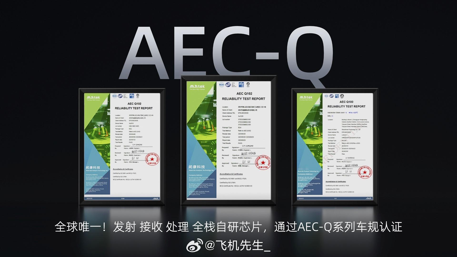 速腾聚创自研的两款核心芯片,都通过了汽车行业非常严格的 AEC-Q 认证。