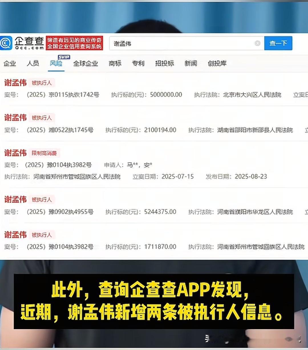 嘎子有可能要成老赖了!最近,嘎子新增了两条被执行人信息,加起来有710万,再加上