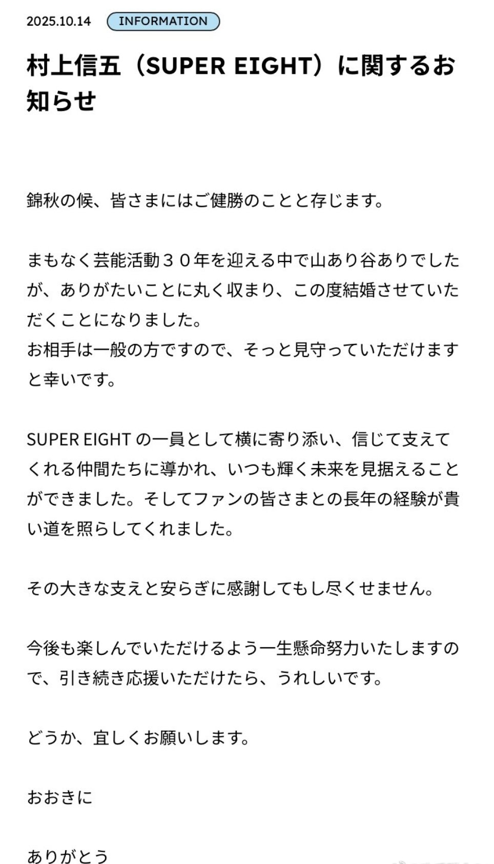 村上信五与素人结婚村上信五宣布婚讯村上信五宣布与素人结婚