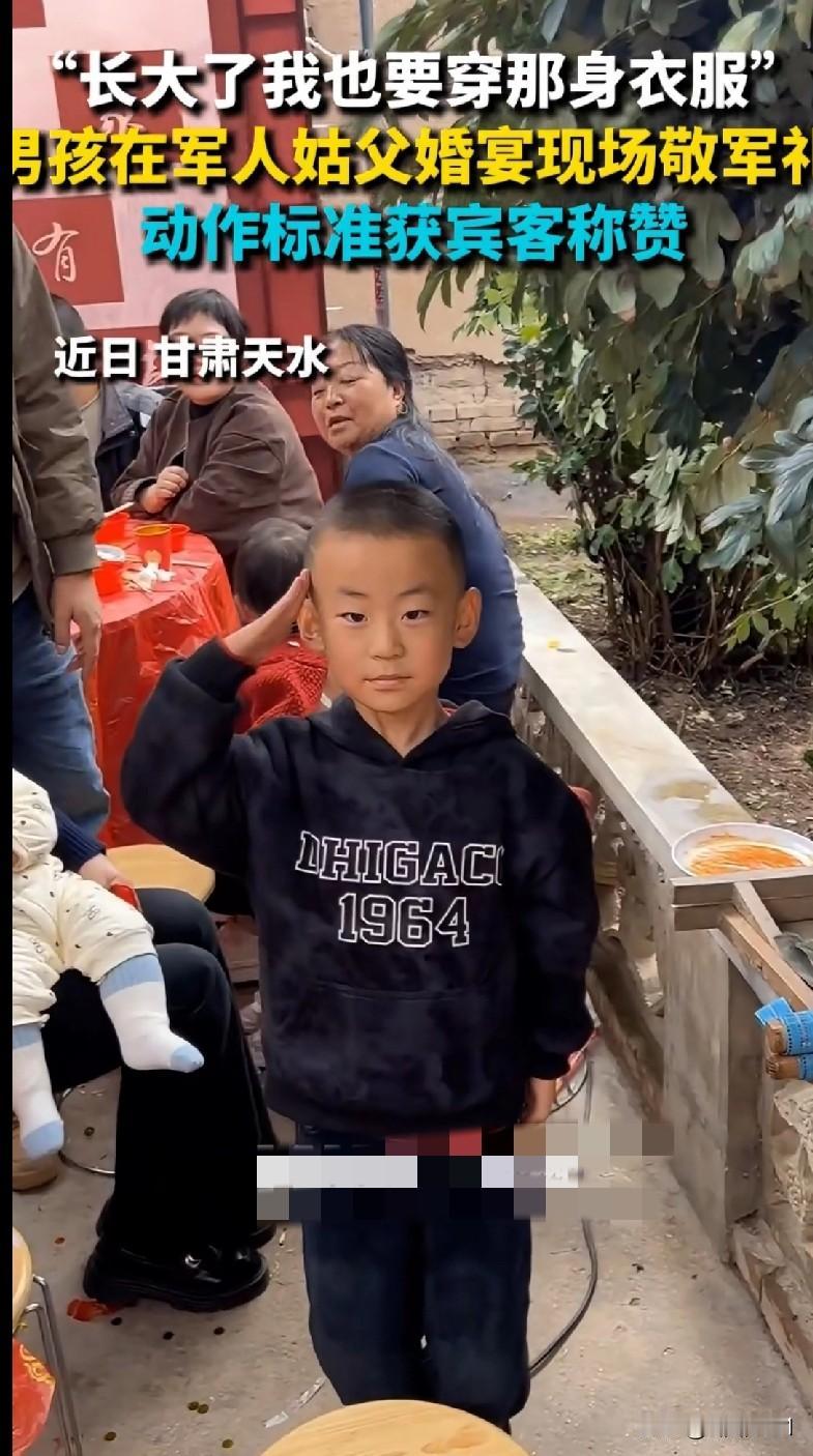 家人们快看!甘肃天水一场军人姑父的婚宴上,有个小男孩敬军礼的画面绝了!动作标准得