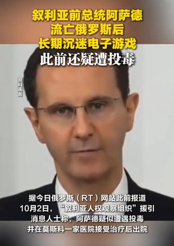 叙利亚前总统阿萨德流亡俄罗斯后,目前与家人居住在莫斯科一栋摩天大楼的豪华公寓内,极少外出,长期沉迷电子游戏,此前还疑遭投毒! 麻烦看官们右上角点击一下“ 关注”,既方便您进行讨论和分享,又能给您带来不一样的参与感,感谢您的支持! 10月11号,环球时报报道了德国媒体披露的叙利亚前总统现状,从大马士革的总统府,到莫斯科高楼里的公寓,这段旅程本身就像是一部充满戏剧色彩的长片。 叙利亚前总统巴沙尔·阿萨德,在世界舞台上曾是无数聚光灯下的核心人物,而如今外界对他的最新印象,却是宅在公寓里打电子游戏? 一个曾经运筹帷幄的领袖,最后在流亡岁月里,找到了一个和普通少年一样的避风港——虚拟世界。 2024年,随着叙利亚局势的急转直下,大马士革的权力中心轰然崩塌。 反对派武装逼近首都,外界的报道里常常带着战火与混乱的画面,而阿萨德家族则在混乱之中悄然被转移。 那一年冬天,他们抵达了莫斯科,俄罗斯为他们提供了庇护,背后更是普京的点头认可,于是一个曾经与中东局势紧密绑定的名字,从此隐匿在俄罗斯的首都。 新生活的落点是一栋摩天大楼,豪华得让人挑不出毛病,挑高的大厅、现代艺术点缀的走廊、私人接待区,完全符合大人物的避世居所想象,但这些光鲜的元素,并没有带来多少真实的活力。 据国外媒体报道,阿萨德和家人把自己安顿在这里,三层楼、几十套公寓,像是把外面的喧嚣全都挡在大门之外。 外出活动极少,他偶尔现身于附近的商场,但总有安保人员在侧,低调得几乎没人察觉,在这样的环境里,他渐渐形成了一种单调的日常。 根据熟悉他过去的消息人士透露,这位前总统如今最大的乐趣,不是读书、不是写作,而是沉浸在电脑屏幕前,一场又一场的网络游戏。 对于外界来说,这个画面多少有点荒诞,一个国家的前领袖,曾经握有决定战争与和平的权力,如今却把时间花在虚拟战场里,与陌生的玩家在键盘和鼠标间较劲。 有人调侃,这或许是权力的另一种退潮,也是流亡孤寂的自然出口! 但流亡的生活并非完全平静,10月2日,关于投毒的传闻一度引发舆论波澜,叙利亚人权观察组织称他疑似在莫斯科遭人下毒,并被送进医院接受治疗。 消息传出时真假未明,但足够让人揣测,即使身处俄罗斯的庇护下,阿萨德也难说绝对安全,几天后有媒体报道他已经出院,风波似乎平息,但阴影依旧存在。 对于一位在国际争议中起落多年的政治人物来说,这样的插曲更像是一种提醒,外部世界始终不会完全放过他。 从被争议笼罩的统治者,到一个缩在屏幕后面寻找慰藉的流亡者,这中间的落差外人看得出,他自己更无法忽视。 结局如何,没有人能预料,或许他会继续守着那栋公寓,在虚拟世界里打发流亡的孤独时光,或许投毒风波只是开端,未来还会有更多变数。 对于一个曾经站在风口浪尖的政治人物而言,这样的命运转折既戏剧化又令人唏嘘。 对此,大家有什么看法呢?这位前总统的未来该何去何从?
