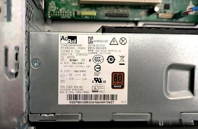 联想的品牌机真的有意思。 现在的品牌电脑,它电源给你个180w的,这个180w电源还带80PLUS认证,关键电源还是定制版的,坏了还不通用。 我说联想啊! 你有那个认证钱,给换个大点电源不行吗? 网友对此表达观点: 你买的是品牌机里的丐版机,你买个专用工作站试试,要啥配置都有。 这种一看就是联想的办公机,机箱很小,没有升级空间,能用就用,不能用就换 商用品牌机都这样,主板,电源都是定制的。隔壁dell也是一样。品牌机电源质量都不,硬件稳定性还是不错的。买商务品牌机不都是正规大企业么,人家不差钱,用几年就直接更换了 你这个好歹是标准接口电源,现在那种单12v的才恶心,想加一个硬盘都没有电源接口