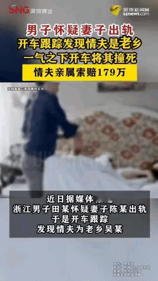 浙江瑞安,女子背着丈夫和贵州老乡搞起了地下恋情。丈夫在得知女子背叛自己后,气不打一处来,便驾车撞向正在路边约会的二人,最终致情夫因抢救无效死亡。后来,丈夫获刑,情夫的弟弟又告上法院向他索赔179万元。网友:“冲动是魔鬼!” 信息来源:深圳新闻网 网友评论: 妻贤夫祸少!有一位贤惠妻子守在大后方,持家有道,不“招蜂引蝶”,男人才能放心闯荡,无畏风雨。[赞] 女人有德变是福,失德则至夫哭!有的女人男方用最箱底的财礼却换来了最致命的祸水!男人在那一刻少部分都会失去心智与一刻泄愤。婚姻法中应出台对出轨方的刑事惩罚。不然像这样的事一旦发生,一害害一窝!损坏了几方家庭,最大的是双方的子女! 好媳妇旺三代,坏的败千秋[捂脸]