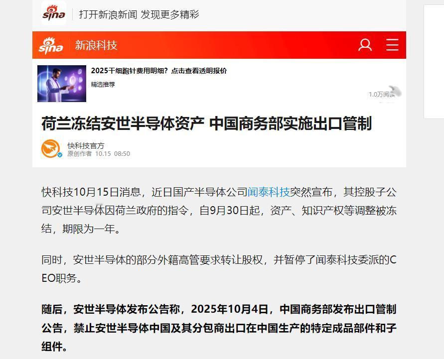 荷兰冻结安世半导体资产后,中国禁止出口安世中国生产的部件和组件。这就意味着荷兰安世半导体无法组装成品出口到中国。 安世半导体的主要业务在中国,这是直接禁止荷兰的安世做中国业务,既然你荷兰把中国公司抢了,那拿到公司也别想赚钱了。 至于技术资料和知识产权,闻泰科技的董事长也说了,安世的产能80%都在中国,剩下的20%也迟早会补上。 咱先说说安世半导体到底是个啥情况。这公司前身是飞利浦的半导体部门,有几十年历史,主要做汽车和消费电子里的基础芯片,全球差不多 20% 的成熟芯片都靠它供应。但自从 2020 年被闻泰科技收购后,它的命根子早就扎在中国了。 数据摆这儿呢,安世 70% 到 80% 的产能都在中国境内,上海临港有它最先进的晶圆厂,车规级芯片一个月能产 7 亿颗,全球每五辆汽车里就有一辆用的是这儿的产品。 广东东莞还有个 8 万平方米的封测厂,一年能生产 500 亿件组件,是全球最大的小信号组件工厂。说白了,安世的核心生产能力全攥在中国手里,荷兰总部手里那点东西,大多是些无形资产,真要造芯片,离了中国的工厂根本玩不转。 更关键的是,中国还是安世最大的市场。2025 年上半年的数据显示,安世在中国区的营收占比快到一半了,足足 48.17%,而且还在以 20% 的速度增长,反观欧洲市场才个位数增长。 它的产品里近 60% 都是卖给汽车行业的,现在中国新能源汽车卖得有多火?全球每三辆新能源车就有一辆是中国造的,这些车好多都用安世的芯片。 荷兰抢了安世,本来想靠着这公司赚中国市场的钱,结果咱一禁止出口,等于直接把它的供货渠道给断了 —— 没有中国工厂的部件,荷兰就算握着控制权,也没法组装出成品卖给中国车企,这不就是竹篮打水一场空吗? 有人可能会问,荷兰不能找别的地方生产吗?别逗了,建厂不是搭积木,得有技术工人、供应链配套,更得有市场支撑。 安世剩下那 20% 的产能分散在德国、英国,德国工厂只占全球产能的 10%,英国的主要搞研发,根本顶不上来。 闻泰科技董事长说得特别实在,这 20% 的产能迟早能补上,这话可不是吹牛。这些年中国半导体产业早就不是当年的样子了,就说和安世业务类似的功率半导体,国内企业早就能顶上。 倾佳电子联合基本半导体搞的碳化硅模块,比进口的 IGBT 模块效率高 4% 还多,成本反而低 20%,现在已经给近 20 家车企供货了。安世那点产能缺口,咱们国内分分钟就能填上,荷兰想靠这点产能撑场面,简直是自欺欺人。 再说个现成的例子,2022 年英国也干过类似的龌龊事,逼着安世卖掉收购的英国晶圆厂,当时不少人担心安世产能受影响,结果呢?中国的工厂很快就补上了缺口,营收反而涨了不少。 为啥?因为中国有完整的产业链,从晶圆制造到封测,上下游配套齐全,工人技术过硬,还能靠近市场快速调整生产。 荷兰现在抢了个没产能没市场的 “空架子”,就算手里有技术资料,没有中国的生产能力和市场需求,那些资料就是废纸一张。 荷兰这步棋其实下得特别蠢,它以为跟着美国搞 “技术围堵” 能捞好处,结果把自己套进去了。要知道,阿斯麦的光刻机生产还得靠中国的稀土呢,镜头镀膜用的镧系元素、精密部件用的钕铁硼,全是中国产的。 咱要是真想较真,稍微收紧点稀土供应,阿斯麦的生产线都得停摆。这次反制安世,不过是先给它提个醒:别以为中国好欺负,你敢破坏规则抢我们的企业,我们就有办法让你拿了也没用。 最讽刺的是,安世本来都快不行了,是闻泰收购后把它和中国市场绑定,才让它扭亏为盈,变成年赚 20 多亿的 “现金奶牛”。 荷兰现在强行夺权,等于把安世从最肥沃的 “土壤” 里拔了出来,没了中国的产能支撑,没了中国市场的订单,这公司用不了多久就得掉价。那些跟着起哄的外籍高管也打错了算盘,真要是安世赚不到钱,他们的饭碗照样保不住。 其实这事说到底,就是荷兰甘愿当美国的 “马前卒”,想在科技领域遏制中国,结果打错了算盘。它忘了全球产业链早就深度绑定了,中国既是生产大国也是消费大国,不是随便就能踢开的。 安世的例子就是最好的证明:你可以抢一个公司的控制权,但抢不走支撑它发展的产能和市场,更挡不住中国半导体产业前进的脚步。 荷兰现在估计也悔得肠子都青了,抢来的公司没法赚钱,还得罪了最大的合作伙伴。咱这反制措施既合法又精准,既维护了企业的权益,也让全世界看清了谁在破坏规则,谁在维护公平。 别说是安世,任何想靠着掠夺中国资产牟利的想法,最后都是竹篮打水一场空!