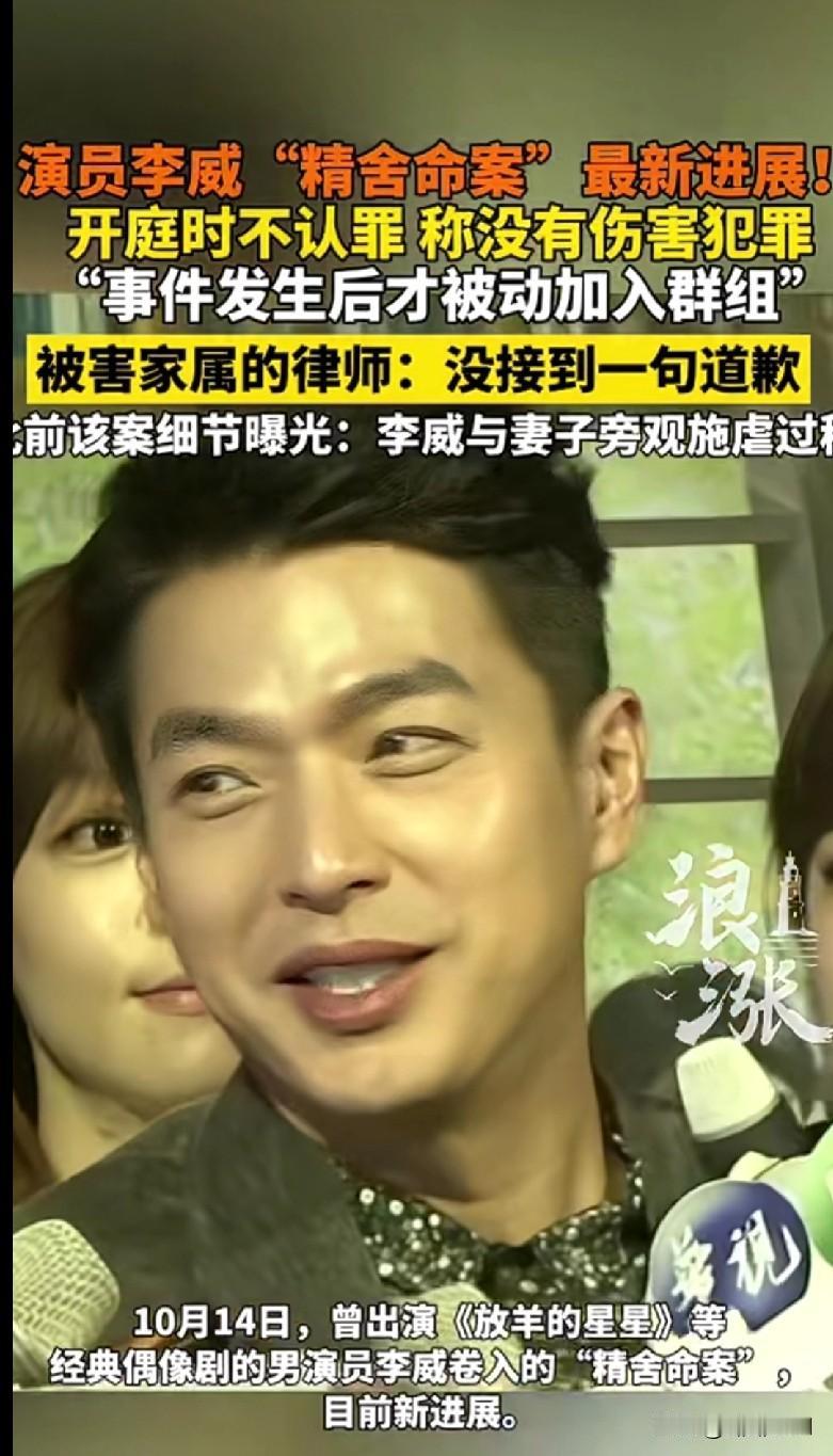 “家人们!谁能想到《放羊的星星》里的李威,居然卷入这么离谱的‘精舍命案’!最新进展来了:开庭时他一口不认罪,说自己没伤害犯罪,还甩锅‘事件后才被动加群组’。结果被害家属律师直接怼:至今没收到一句道歉!之前还曝出他和妻子旁观施虐的细节,这操作也太迷了吧!当年的偶像剧男神这波‘甩锅’操作,你们觉得是真无辜还是狡辩?快来说说你的看法!”
