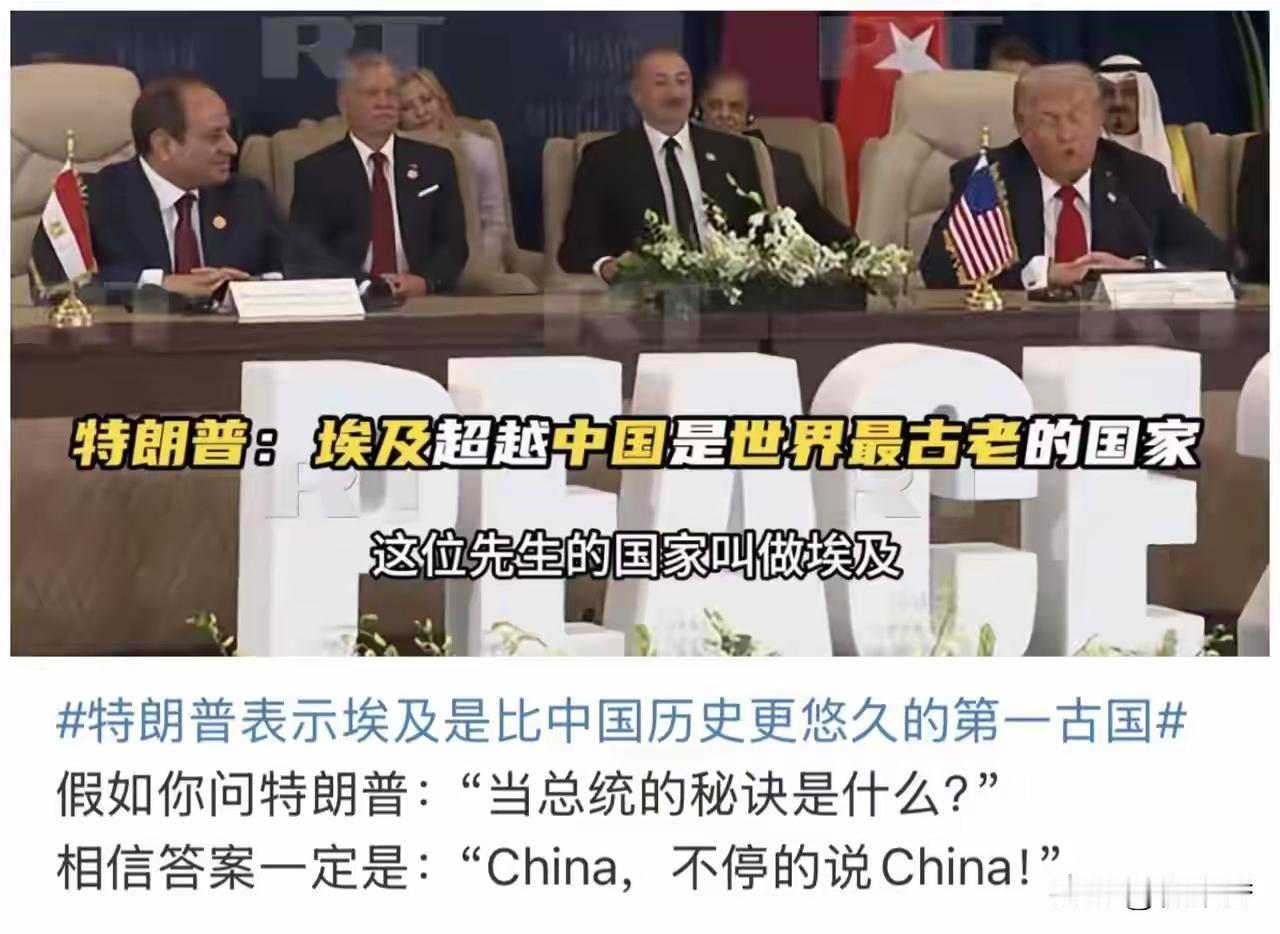 特朗普在埃及峰会上又爆惊人言论:"埃及有6000年文明,中国只有5000年,中国