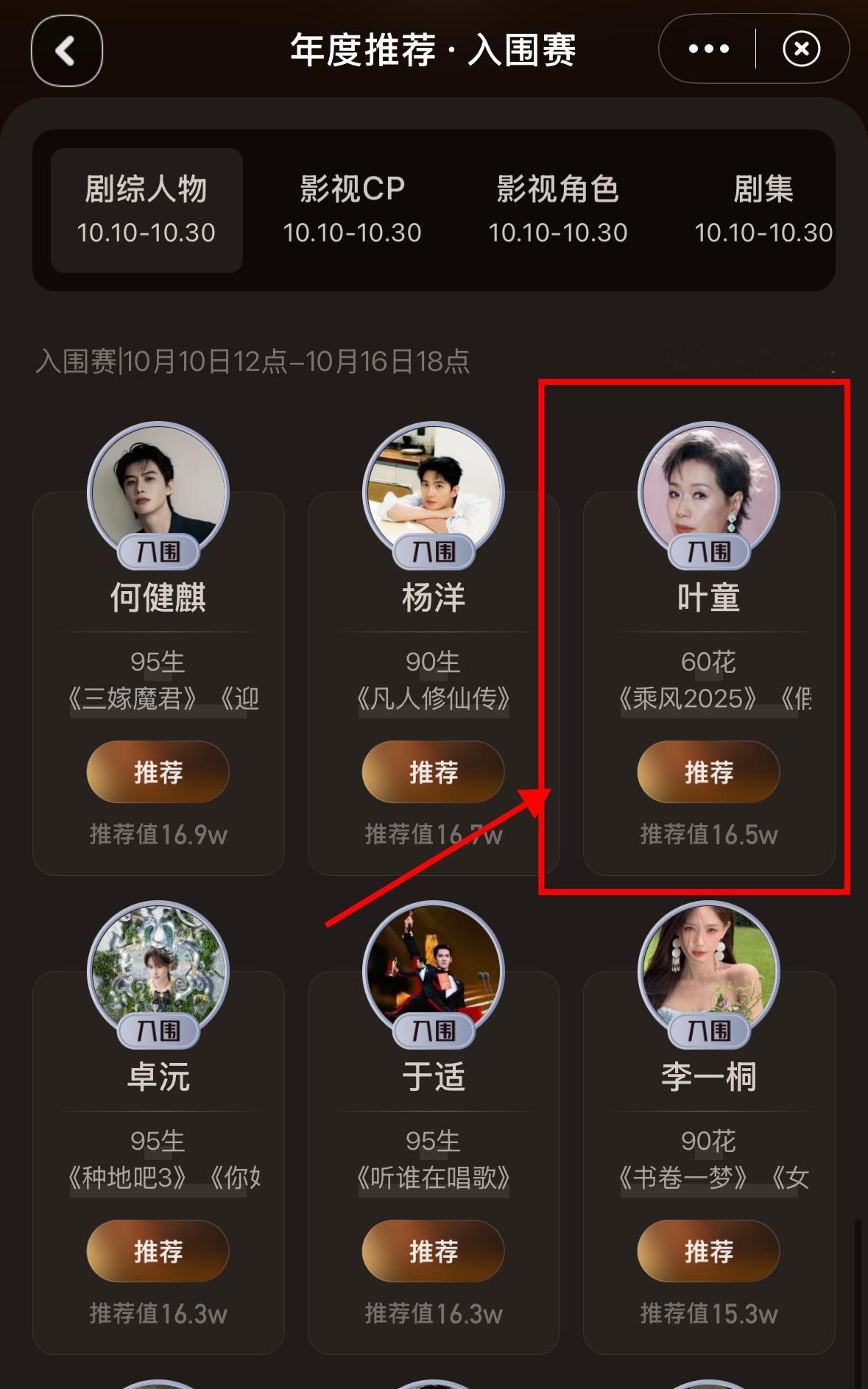 叶童60花第一个破10万叶童601恭喜在微博视界大会年度推荐成为首位推荐值突