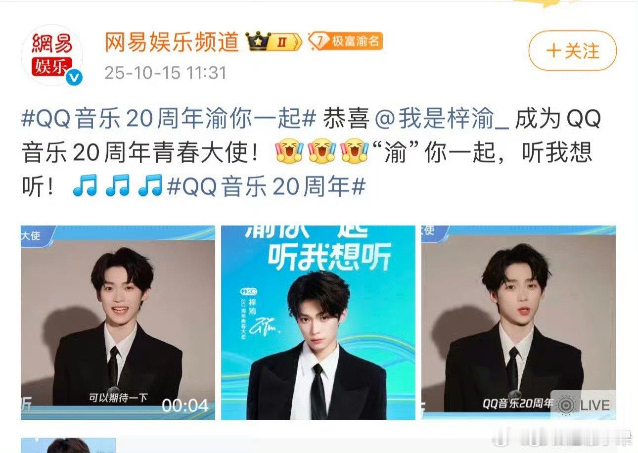我去梓渝和qq音乐合作了这算不算热度爆了梓渝QQ音乐网易恭喜qq音乐​​