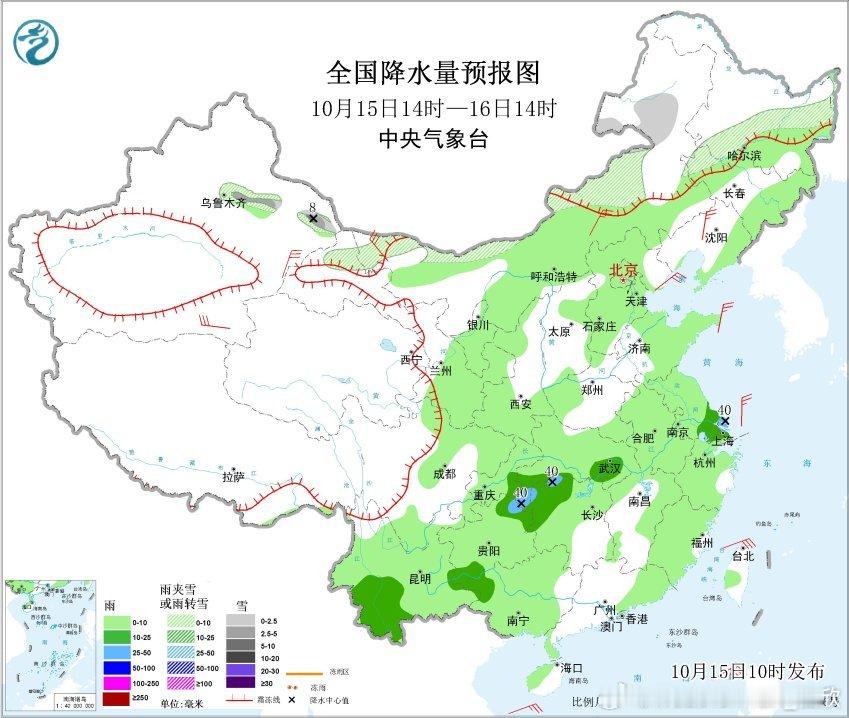 【雨雪追踪】今天08-14时,新疆北部天山沿线,内蒙古东部、黑龙江部分地区出现降雪。从云南广西贵州到山东多地,出现降雨。贵州乌当6小时雨量52.6毫米,排名全国第一。而且今天贵州广西云南部分地区还出现了短时强降雨。从雷达上看,西南-东北走向的降水还在维持,今天下午到明天中午,中东部地区的降水范围广泛,但总体强度较弱。