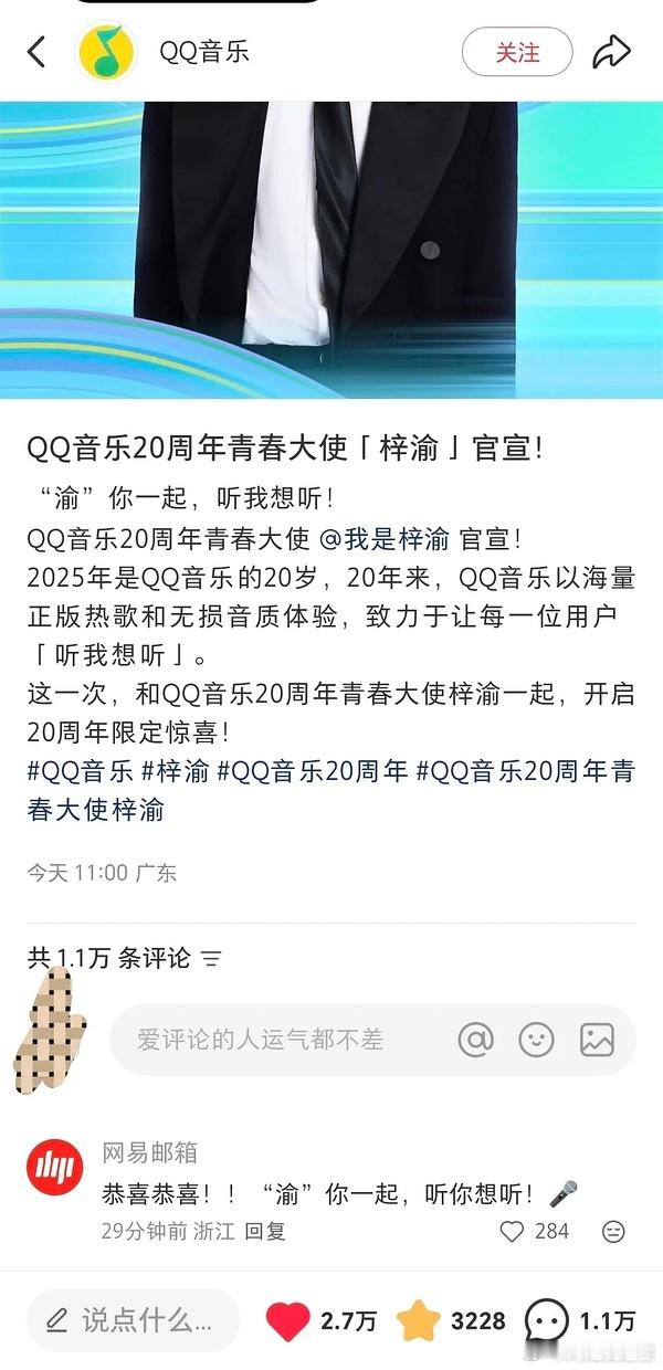 三大音乐软件都认可梓渝,都有他的大大的宣传物料,这波动静很大啊!QQ音乐,网易云