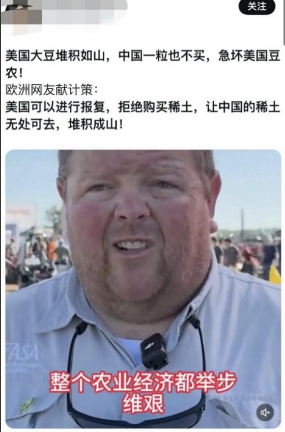 欧洲人给老美出了个主意:中国拒绝进口你们的大豆?你们也拒绝进口他们的稀土,让他们