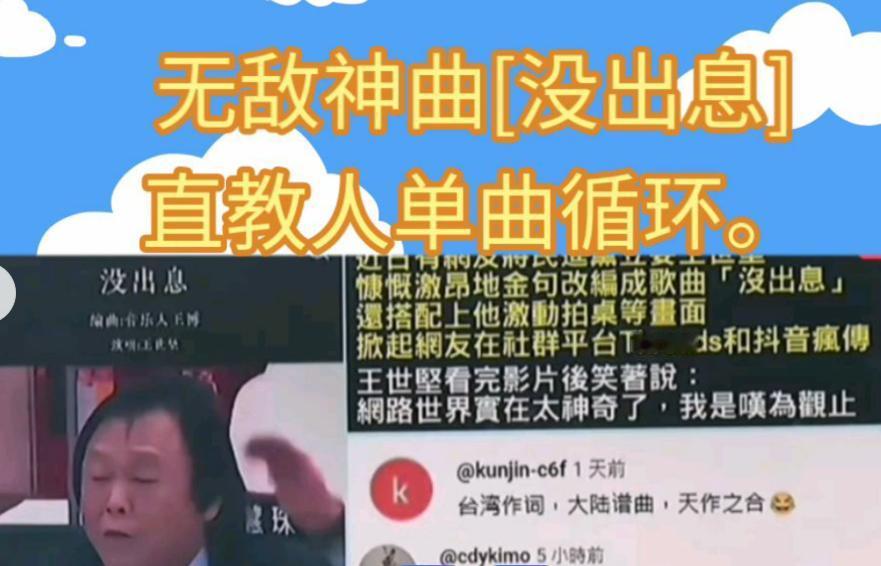 当《没出息》变成神曲:两岸一段意外的共振 那是几年前的一个议会现场。 台北市议会里,王世坚站在质询台前,声音激昂、手势夸张,拍桌、翻白眼、语气急切。 他说:本来应该从从容容、游刃有余,现在是匆匆忙忙、连滚带爬!睁眼说瞎话……你在哭什么啊?没出息!那段视频原本在台湾就有些流传。 直到一位大陆的音乐创作者王搏拿到那段素材,把它剪辑、配上节奏、加上旋律,形成一版《没出息》神曲,于抖音等平台发布。 瞬间,这支政治语录加魔性旋律的混搭版本就在大陆社交平台炸开。 然后更神奇的是:它顺着网络传播的路径,被红回到台湾,岛内网友开始模仿、翻唱、改编、讨论。 从素材采集、算法分发,到再创、返流,这不是单向输出,而是一条来回摇摆的文化通道。 它像一根隐形的弦,把台湾和大陆某些隐在日常和记忆里的情绪给连了起来。 神曲火了以后,各种版本涌现:抒情版、陕西话版、粤语版……也有人在歌词里插入政治暗喻、情感表达或地域符号,使得这首原本借用的作品,越来越贴近接收者的文化语境与情绪语调。 更有意思的是,这首在大陆走红的神曲再被台湾网友捡回去:在岛内社媒被讨论、模仿、讽刺、玩梗。 这样一来,它就不只是一个外来产品,而成为两岸共同参演的一件文化共创品。 台湾一些网友自己说:其实听起来一点隔阂都没有好像就是我们自己在唱。 如果你以为这只是娱乐化的带梗传播,那就低估了它的意义。 因为神曲背后,隐含了更深的身份认同、民意表达、政治情绪等几个维度。 在两岸政治语境里,对于台湾一些民众而言,神曲中批评的对象自然而然就指向当政党或执政者; 也就是说,这首歌在被政治化的同时,也被大众去政治化地当做一种共鸣载体。 长期以来,两岸在政治对立的大框架下,官方言论常强调差异独立性主权归属,普通文化交流容易 被定义为软实力斗争或统战渗透。 但《没出息》这条文化路径,恰恰绕过了重重政治禁区,从底层民间出发,重塑了一种语言感情绪共振审美接近的通道。 《没出息》走了一条奇异的台湾萌发→大陆二创→两岸返流路径,它告诉我们:在鸿沟与对立之外,还有一条由底层情绪、语言记忆和文化代码构成的隐形通道。 两岸若因政治化的理念而保持距离,那么民间的文化表达,正是构建心灵连接的裂缝。 这首歌的火爆既是一次娱乐暴走,也是一次民意释放、文化实验。 那些唱没出息的人,不只是要嘲讽现状,更在等一种可以回答有担当、有出息、有未来的可能。 你怎么看?你觉得这首《没出息》神曲背后,还有哪些被大众忽略却很重要的意象或逻辑?请在评论区告诉我你的看法。
