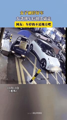 广东,女车主刚把车停好,没想到一位骑三轮车的大爷就把车给刮了,可大爷不仅没停车,