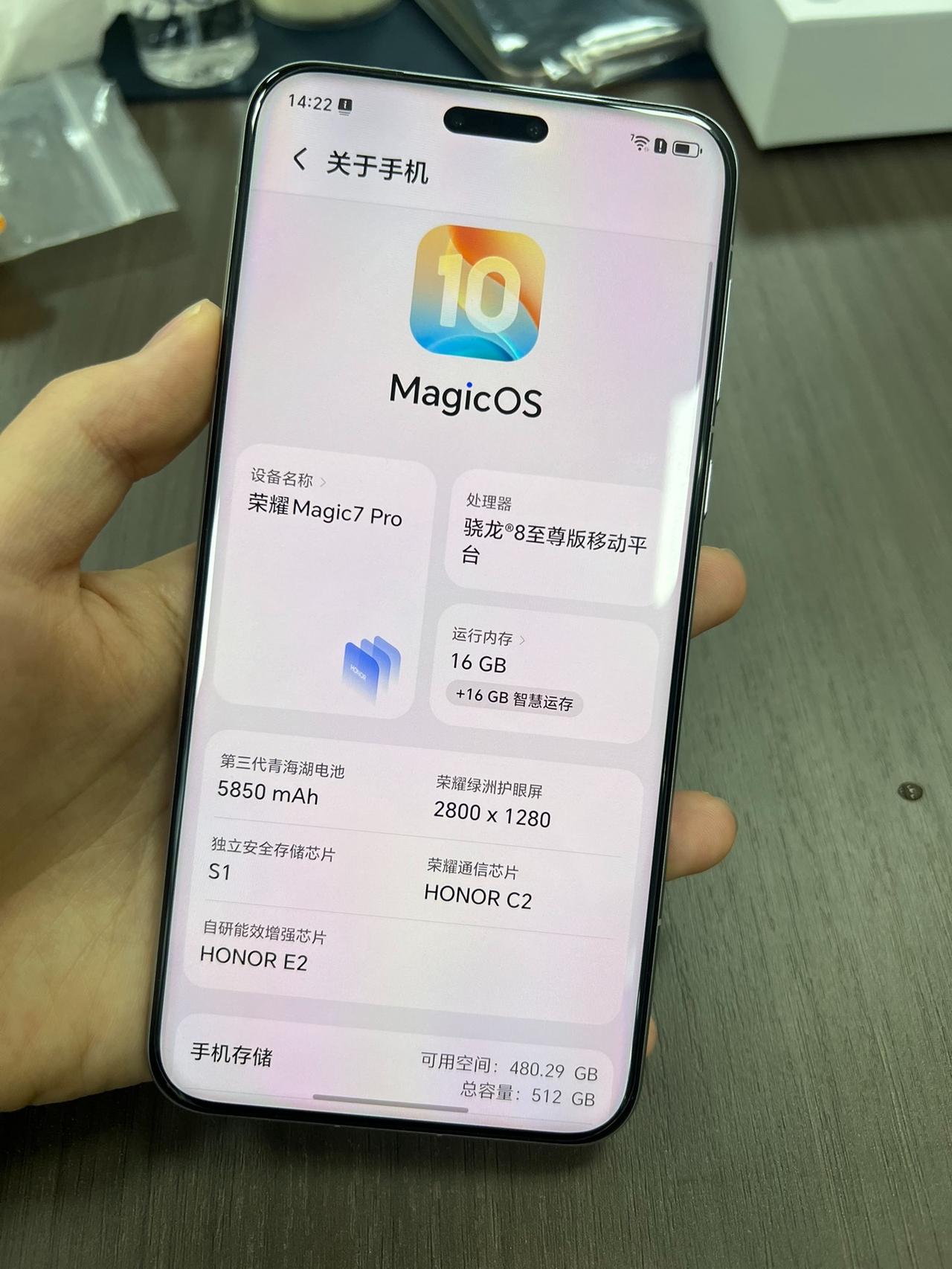 朋友3月份入手了荣耀Magic7 Pro,今天终于忍不住了,给我说要换手机了。 从3月份用到现在,也用了半年了,刚到手的时候,感觉非常不错,不仅外观时尚,性能也是绝绝子。打游戏、看剧完全不卡顿,画面色彩超级饱满,追剧体验直线up!而且续航能力超强,充一次电能用好久,拍照效果更是让惊艳,随手一拍都是大片感。 最给力的是它的解锁速度,人脸识别快到不行,早上起床迷迷糊糊也能轻松解锁。用到现在表现始终如一,让他感到特别满意,听说最近荣耀Magic8也快发布了,配置全面提升不说,AI功能也超强,他就忍不住想换成Magic8 Pro来用用,7Pro就给他上学的弟弟用了,找到个各方面都适合自己的手机真的挺好的,你们觉得呢!