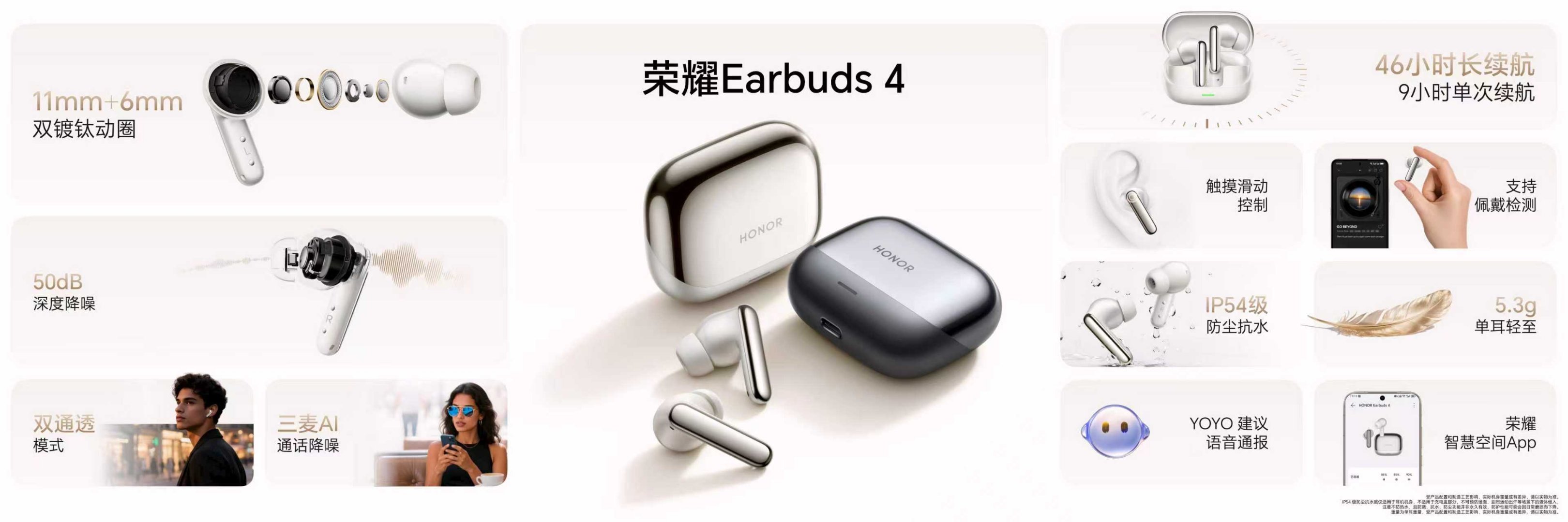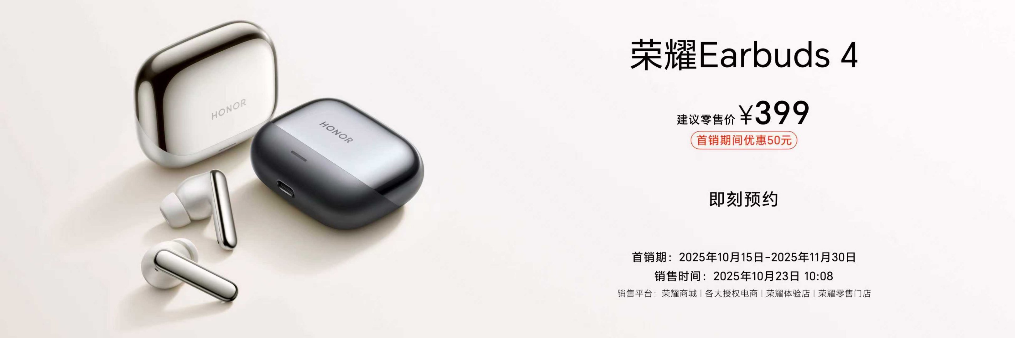 荣耀 Earbuds 4 售价 399 元,首销 349 元。