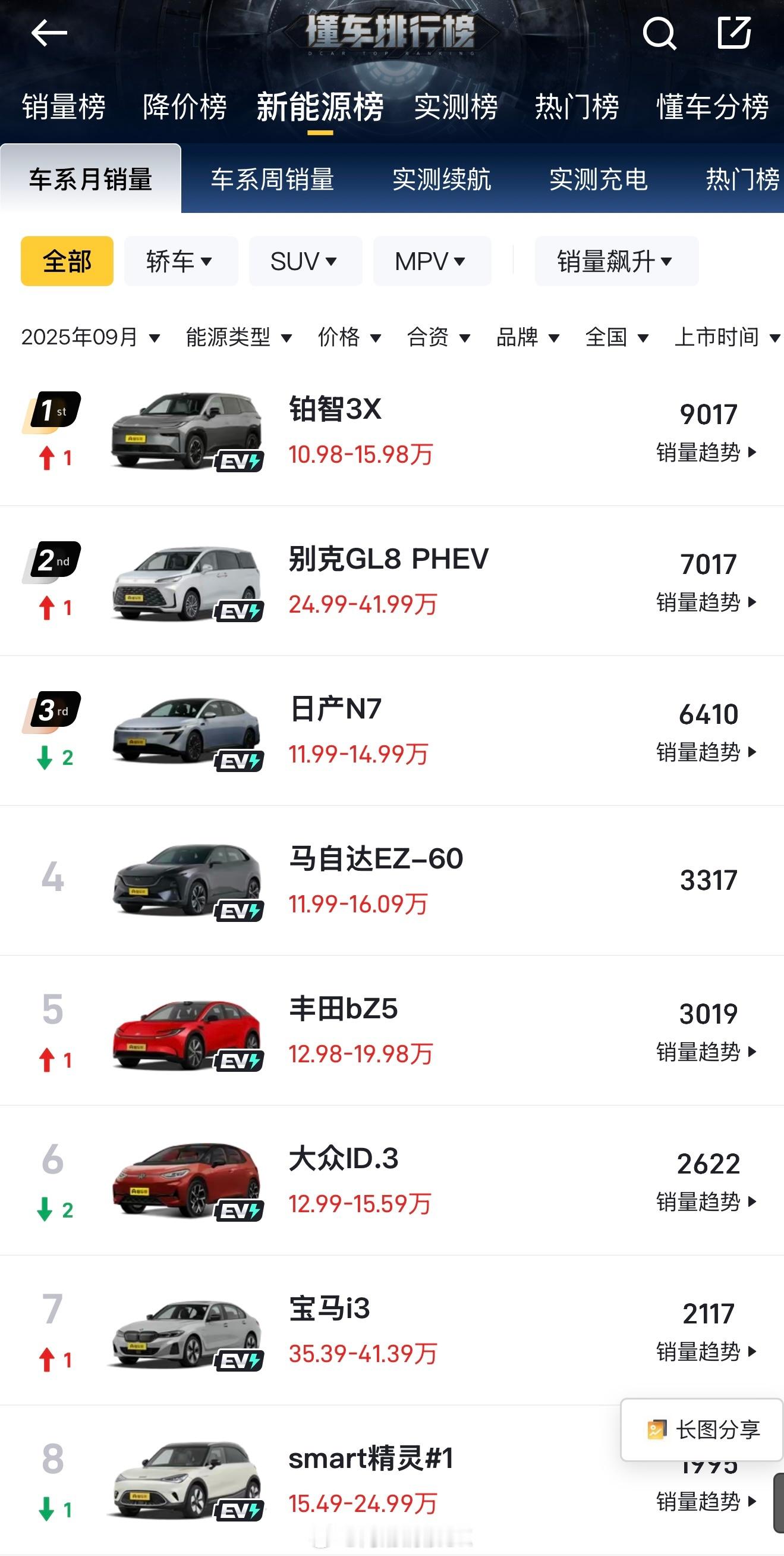 作为符合丰田全球品质标准的实力车型,铂智 3X登陆香港不仅是产品布局,更释放广汽丰田国际化加速的强烈信号,为合资品牌转型树立新范本,未来有望走向更多海外市场。内地市场早已验证其实力,9月懂车帝合资新能源车销量榜中,铂智 3X强势登顶,10.98-15.98 万的亲民定价搭配高阶智能配置,持续领跑细分市场。