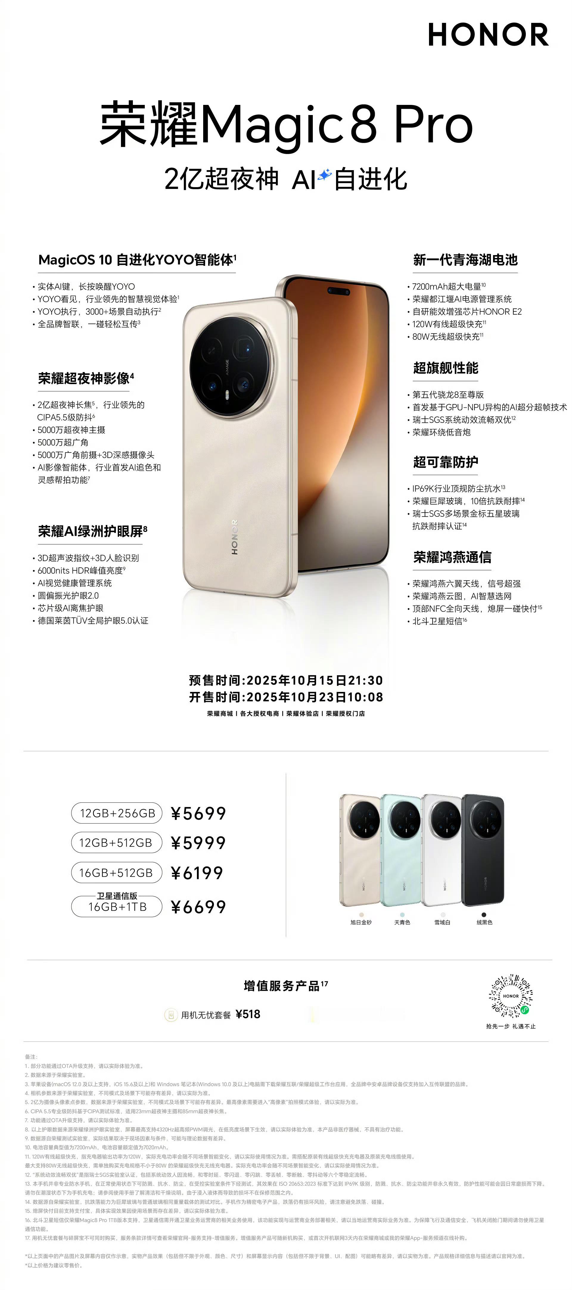 荣耀Magic8系列2亿超夜神,AI自进化!全系搭载MagicOS10自进化YOYO智能体,挑战手机AI新巅峰;新一代青海湖电池,续航无忧;第五代骁龙8至尊版;荣耀AI绿洲护眼屏;荣耀鸿燕通信;满血旗舰性能拉满!