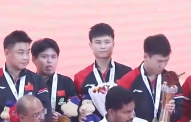 哈哈,笑不活了, 小石头还是太年轻了, 一点都藏不住事。 亚锦赛男团颁奖仪式,