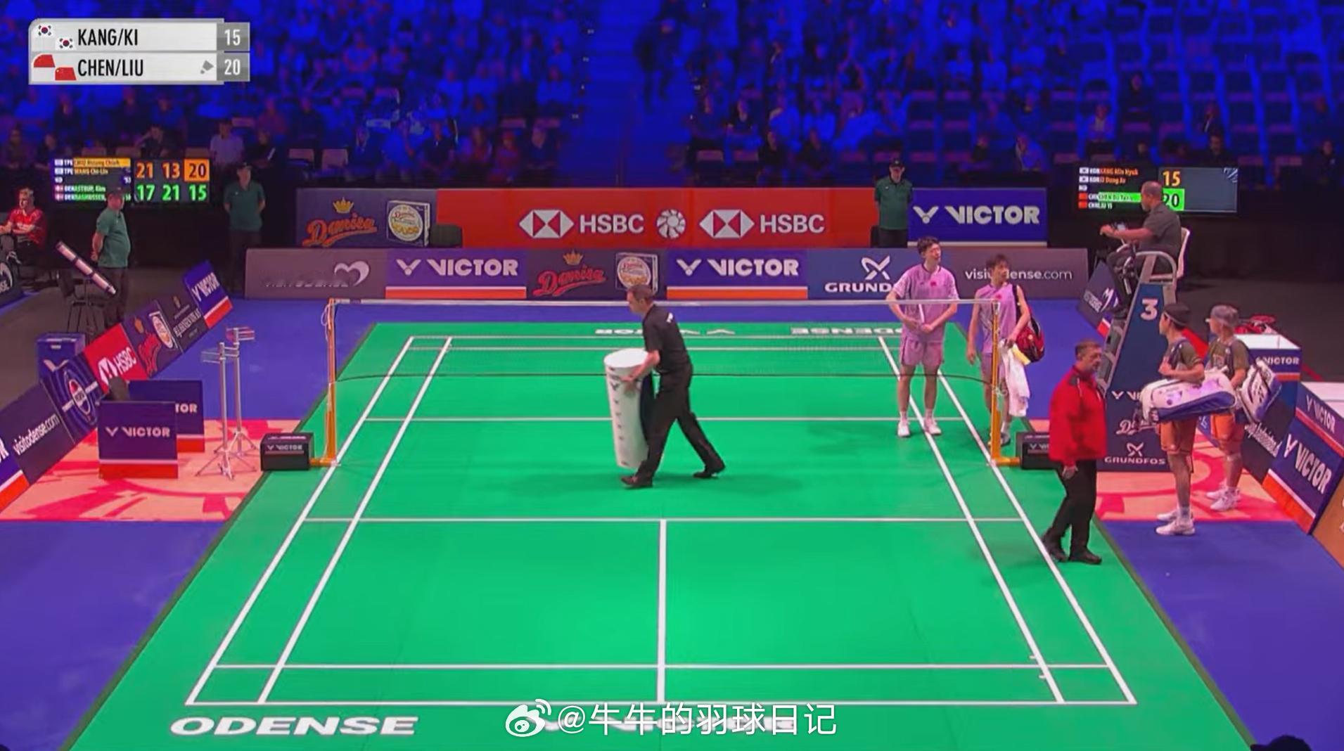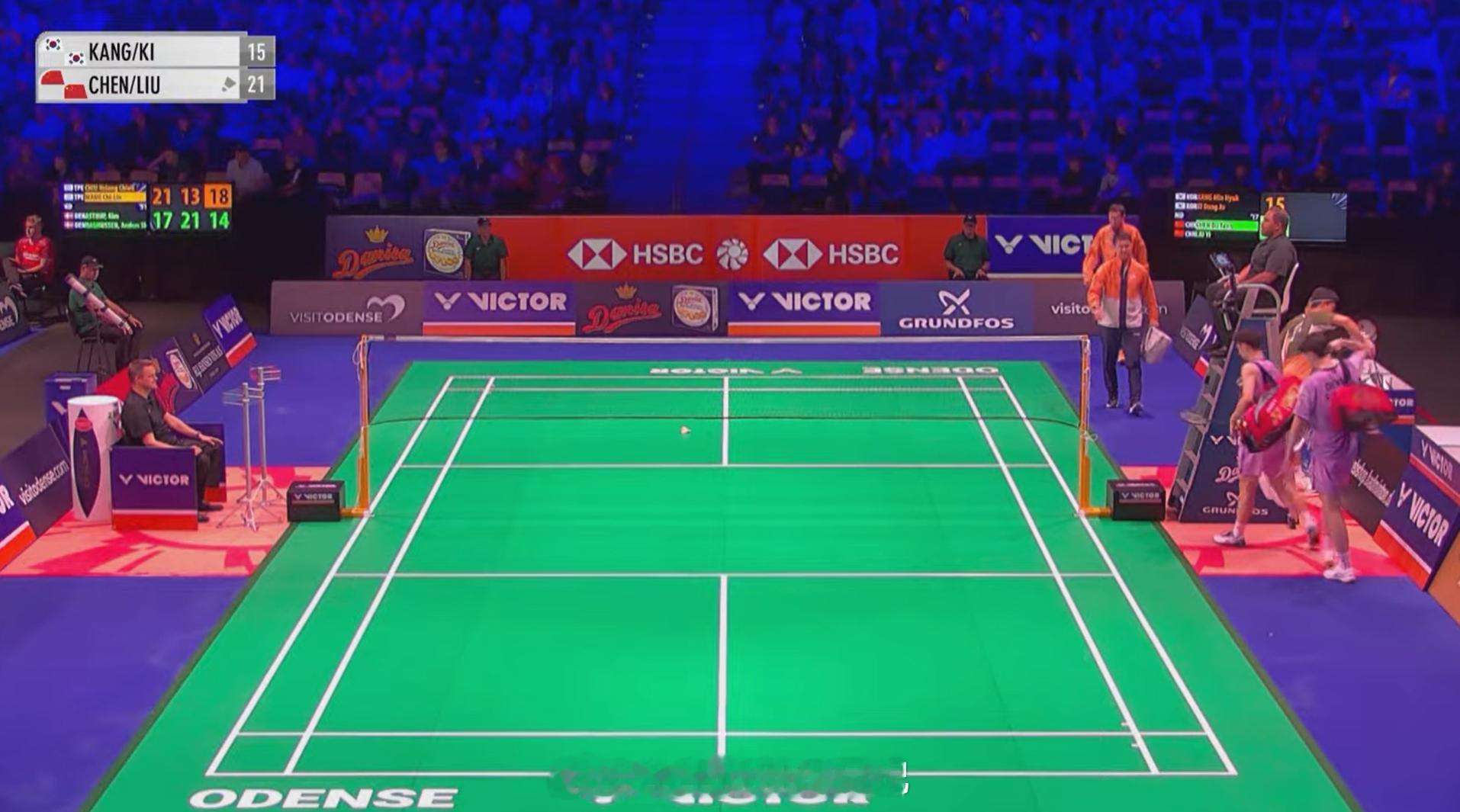 刚刚陈柏阳/刘毅对阵姜珉赫/奇东柱比赛中,15-21拿下第一局后韩国队退赛然后主