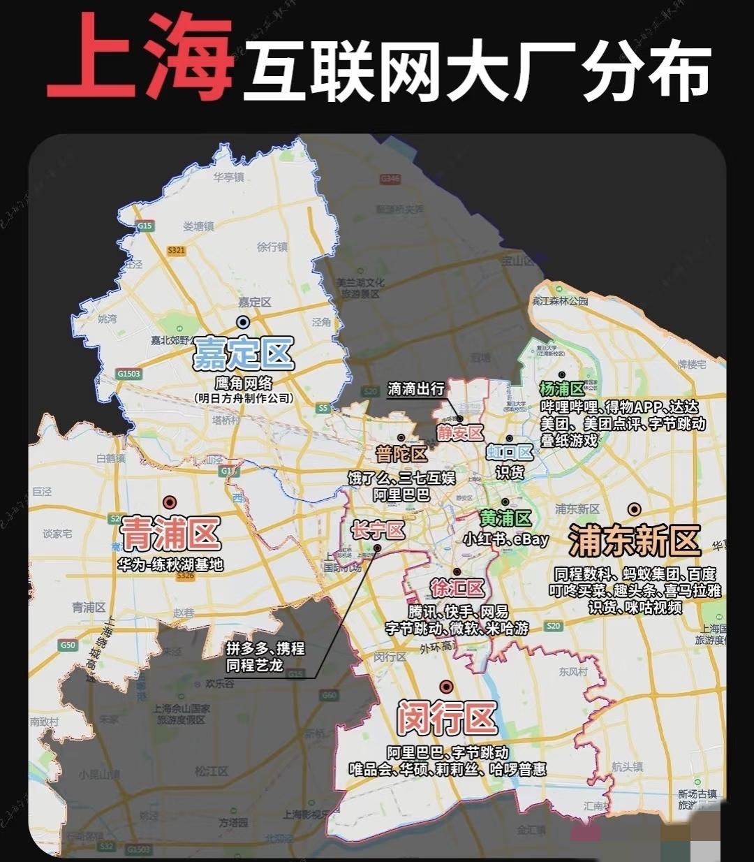 上海的互联网大场,比北京分布均匀多了北京基本上全都在城北[送心]