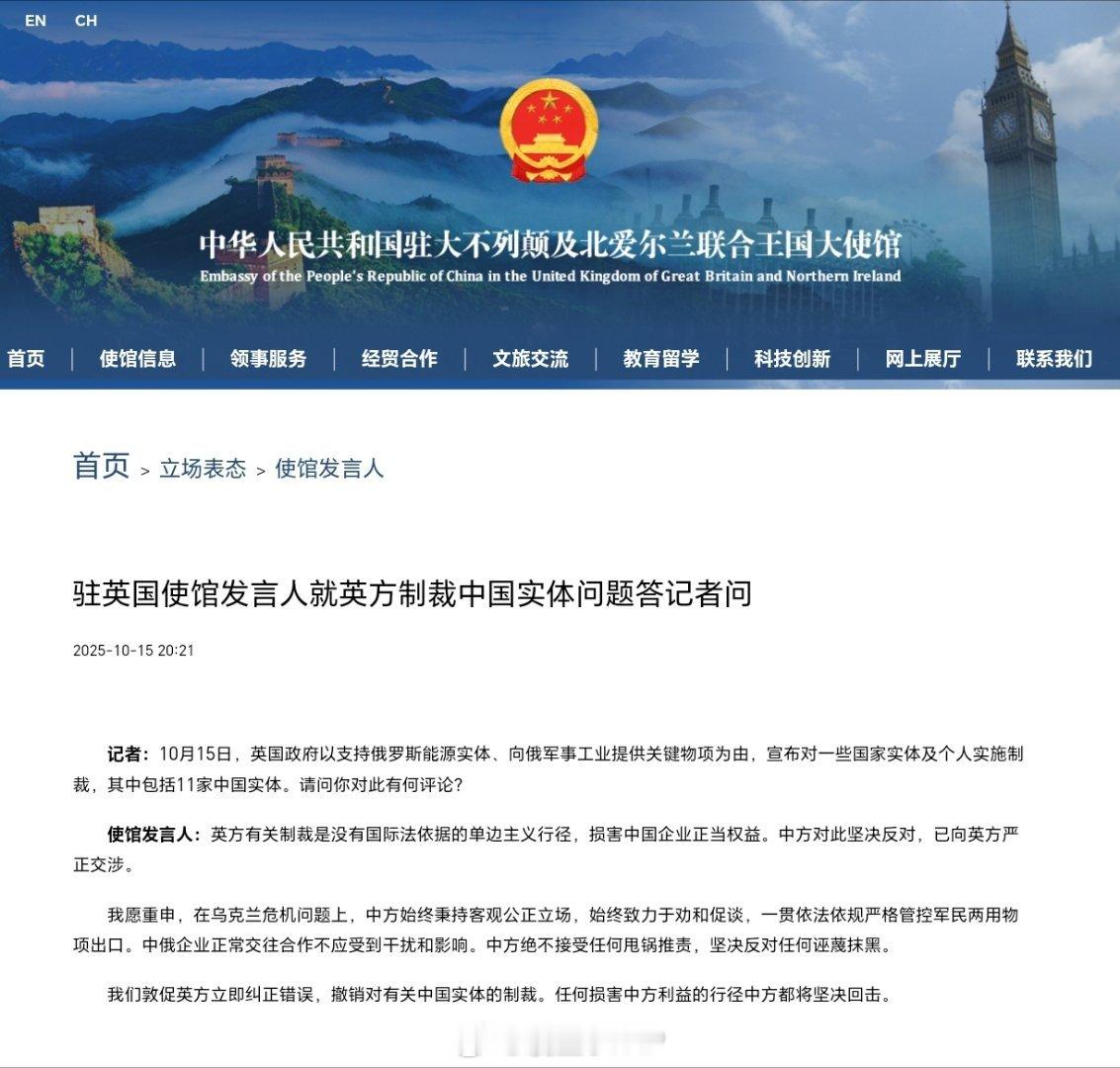 中方坚决反对英方制裁11家中国实体中方向英方严正交涉驻英国使馆发言人就英方制裁中国实体问题答记者问