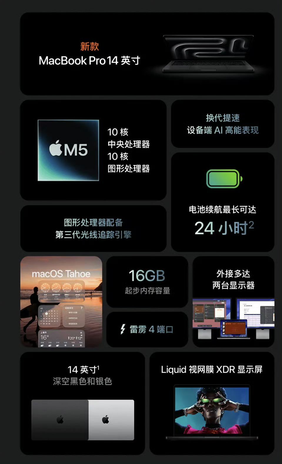 M5芯片苹果的M5宇宙正式建立了,新款基本都是换了处理器,外观没有大改。