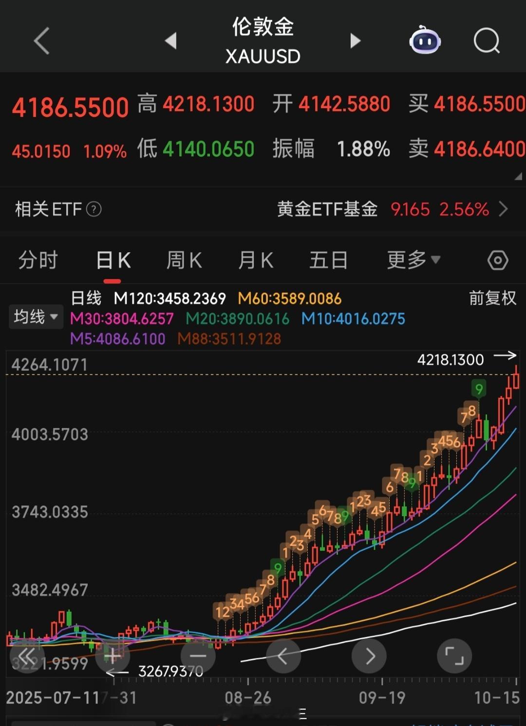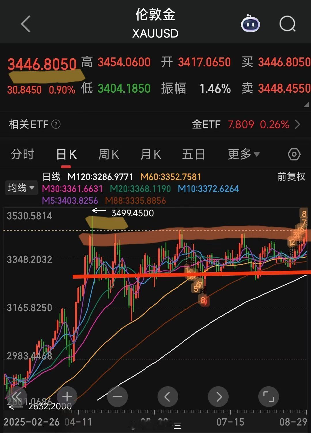 说新一轮黄金行情正式启动(如图1/2,刚启动时的位置,图3是黄金今天价格)日更朋友圈,围观