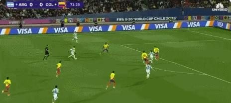 2025年U20世界杯半决赛,阿根廷对阵哥伦比亚的比赛在智利圣地亚哥的国家体育场进行。上半场比赛,双方都没能攻破对方球门,半场阿根廷0比0哥伦比亚。易边再战,效力于迈阿密国际的马特奥·西尔维蒂推射破门为阿根廷队打破僵局,哥伦比亚的伦特里亚两黄变一红被罚下。