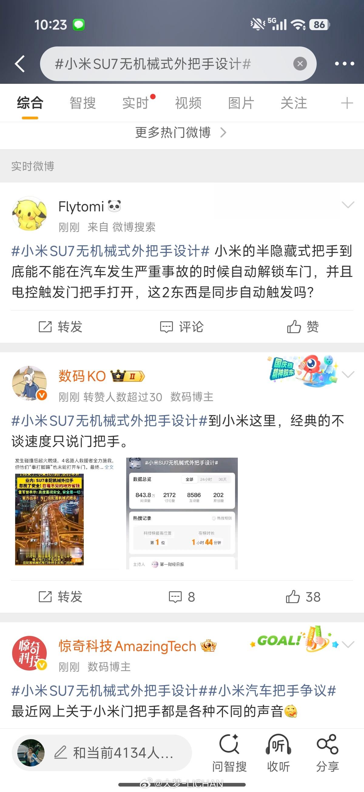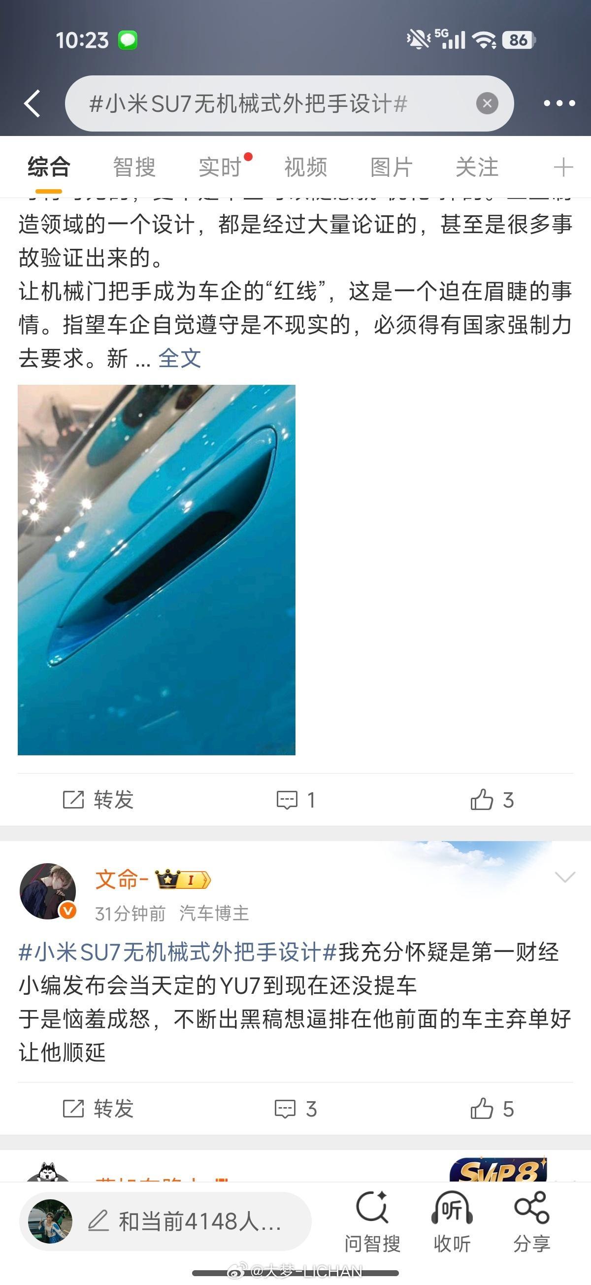 小米SU7无机械式外把手设计