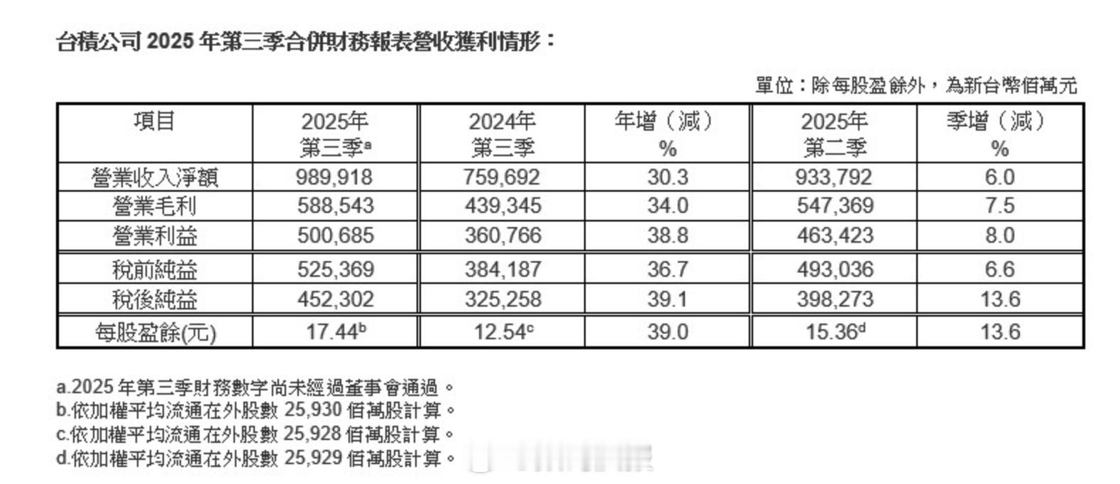 今年第三季度,台积电营收9899.2亿新台币,净利润4523亿,毛利率59.5%