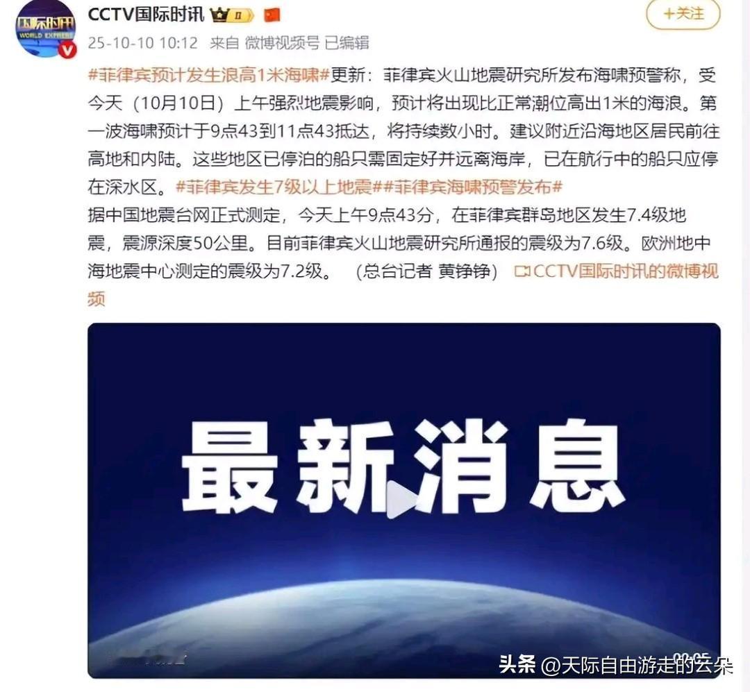【突发!菲律宾发生7.6级强震,海啸警报拉响!】🌊 ⚠️最新消息:今天(1