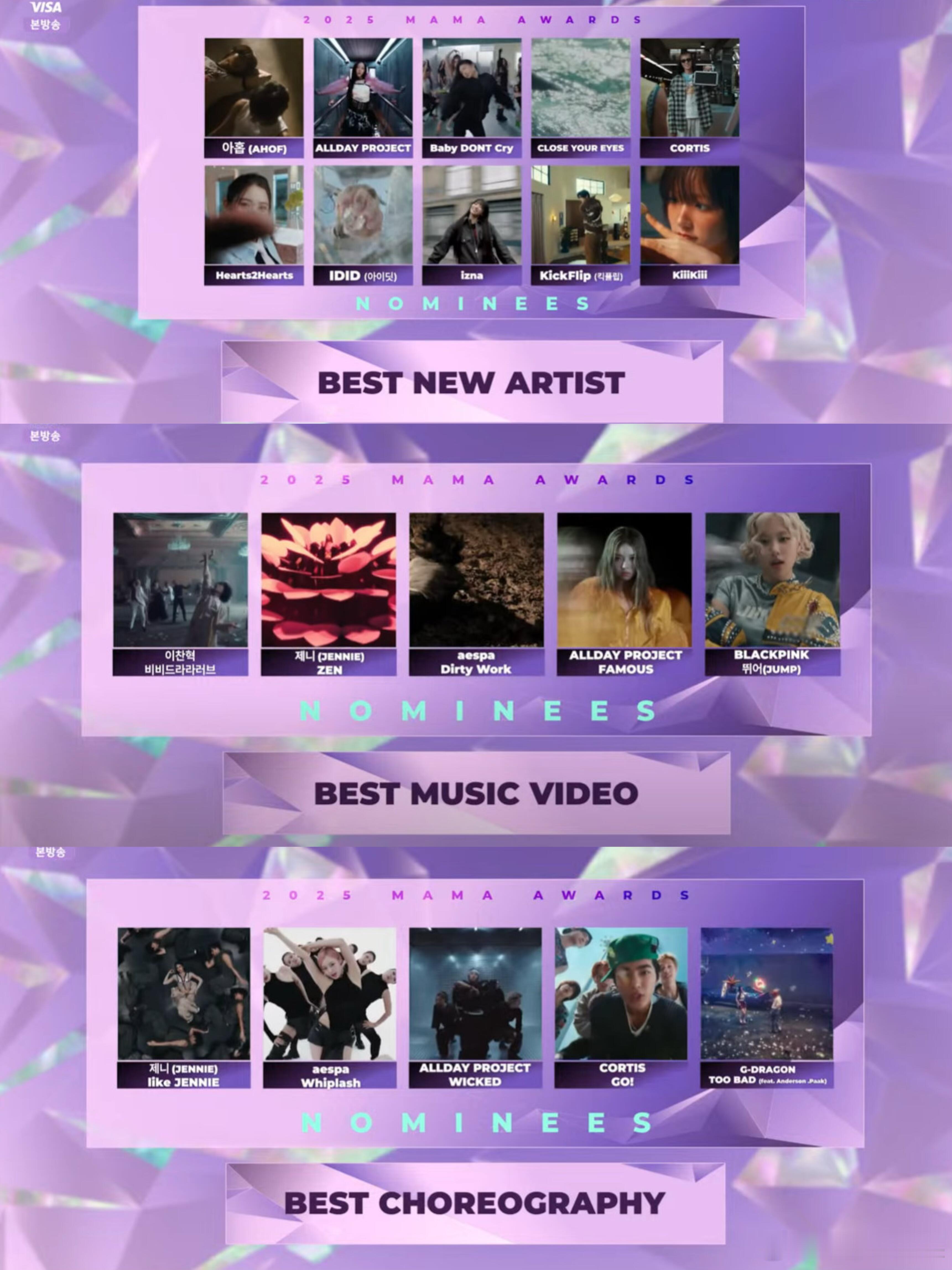 最佳新人提名:AHOF、ALLDAY PROJECT、BABY Dont Cry、CLOSE YOUR EYES、CORTIS、Hearts2Hearts、idid、izna、Kickflip、KiiiKiii