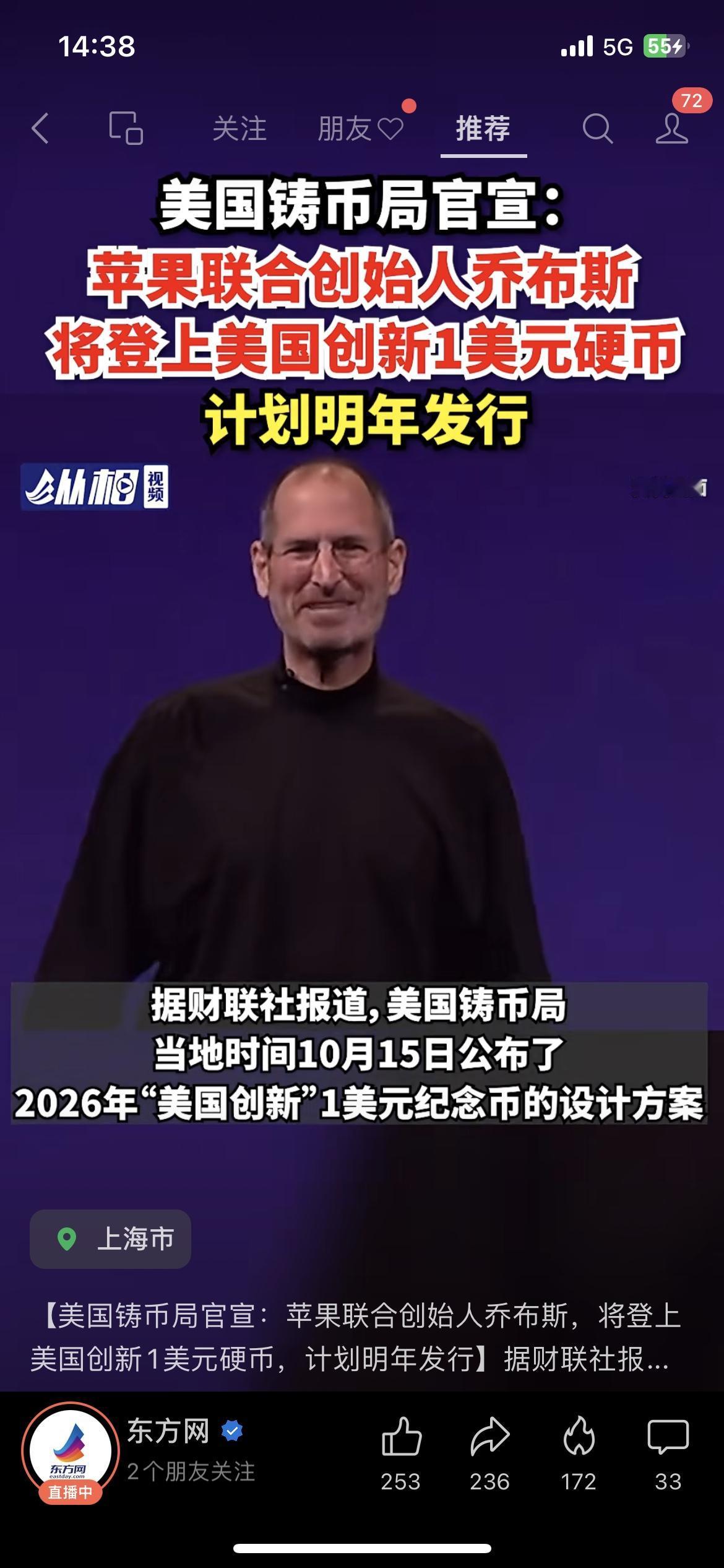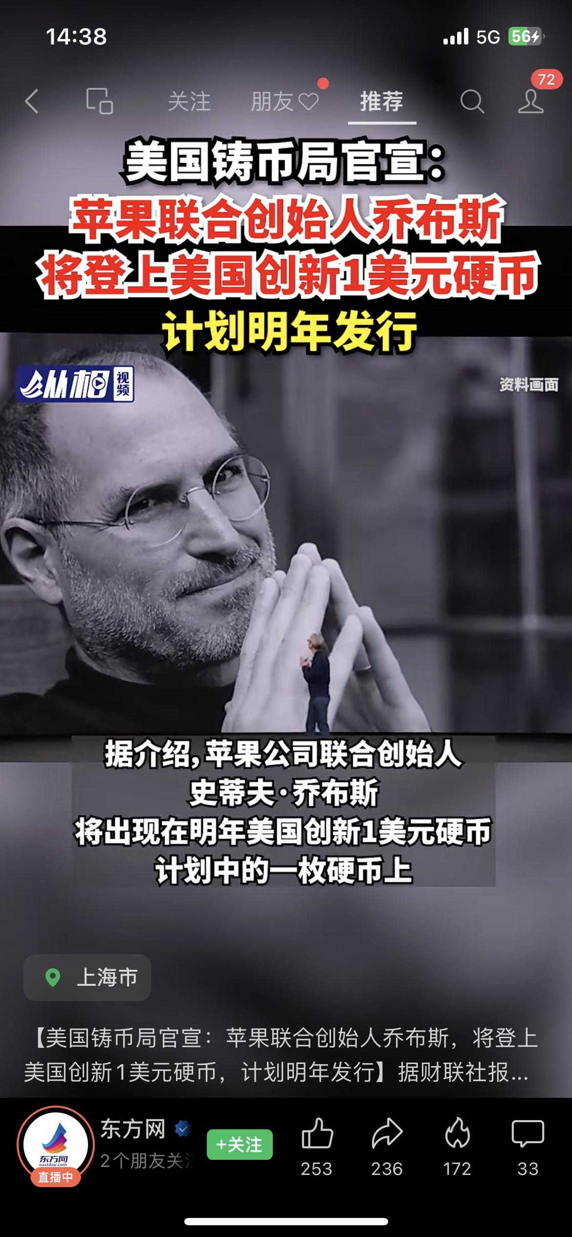 哇塞!乔布斯要被印在美元硬币上了!美国铸币局官宣,明年发行! 🔥苹果粉和币圈
