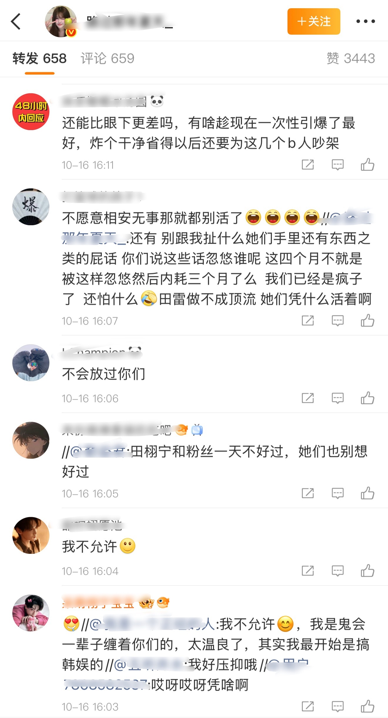 我还真以为粉丝不需要田雷回应呢?这不,48小时内必须大回应来了,第一条就是有关若