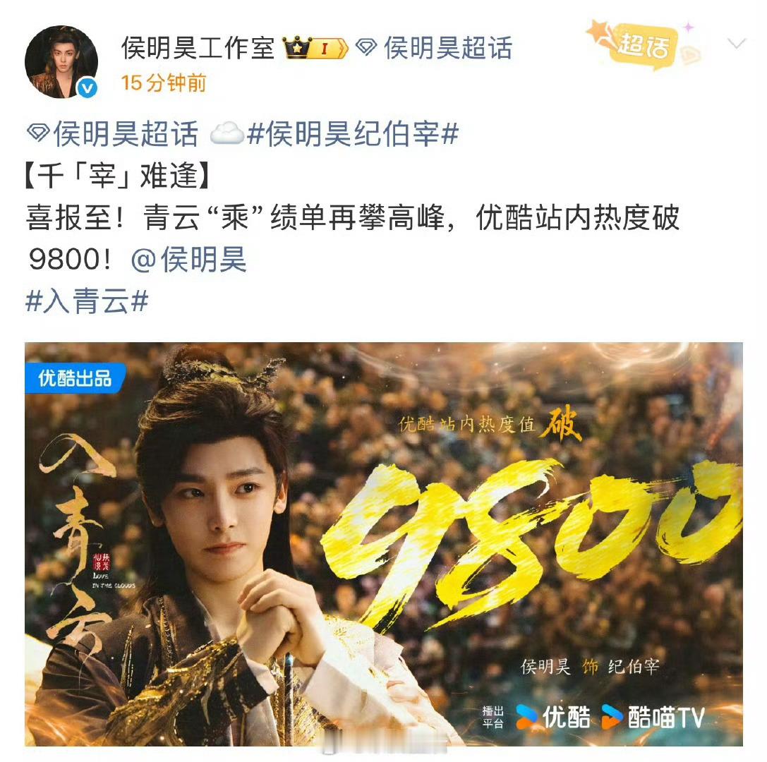 侯明昊玩自己的古风小生梗[泪奔][泪奔][泪奔] 他好爱他演的角色,对纪伯宰的解读处处可见用心!入青云破万指日可待了,侯明昊在👖播的每部剧,热度都破万了吧。[赞]
