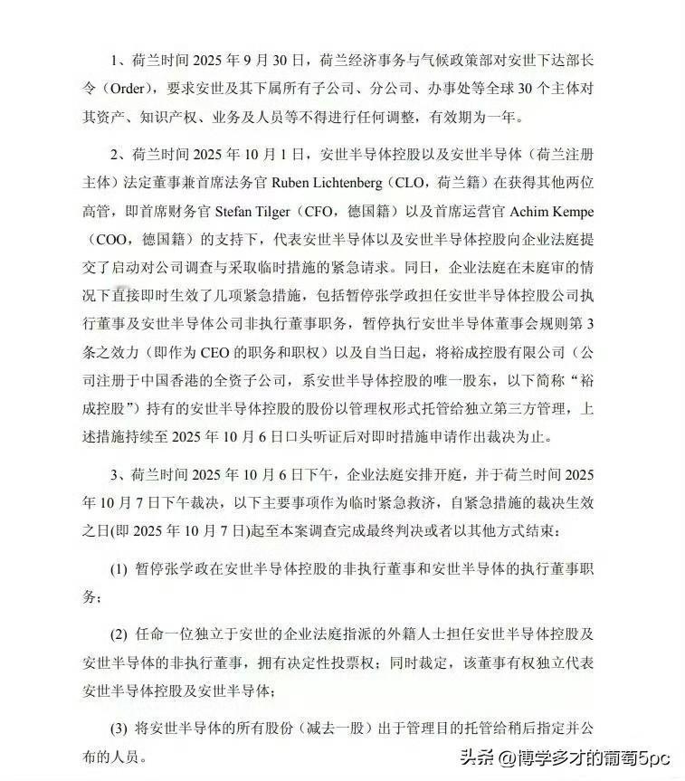 中国半导体企业闻泰科技,被荷兰政府“背刺”。147亿资产被冻结,子公司安世半导体被“强行托管”,CEO被罢免,股权被架空,一夜之间,中资成了“名义股东”,实权全归荷兰人! 美国都不敢明着干的事,荷兰,它干了。 安世半导体源自荷兰飞利浦半导体事业部,拥有60余年积淀,曾垄断中国单片机市场,后成为全球顶尖功率半导体企业。2018-2020年,闻泰科技以超330亿元(前期核心支付258.54亿元)完成对其100%控股,这场“蛇吞象”式跨境并购,成为A股半导体行业最大规模同类交易。