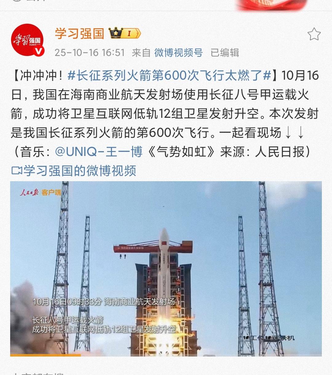 “冲冲冲”《气势如虹》!王一博的歌又一次陪伴我国长征系列火箭升空! 优秀的正能量的主流宣传门面担当王一博,任何“大场面”从不缺席[赞]。 王一博