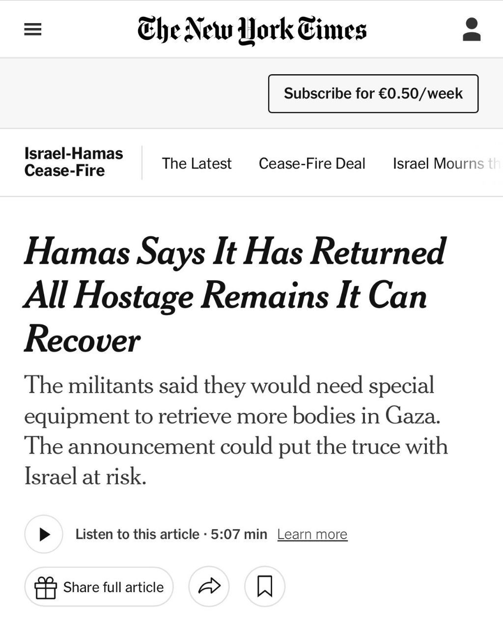 武装分子表示,他们需要特殊设备才能在加沙地带找回更多尸体。这一宣布可能会使与以色列的停火协议面临风险。
