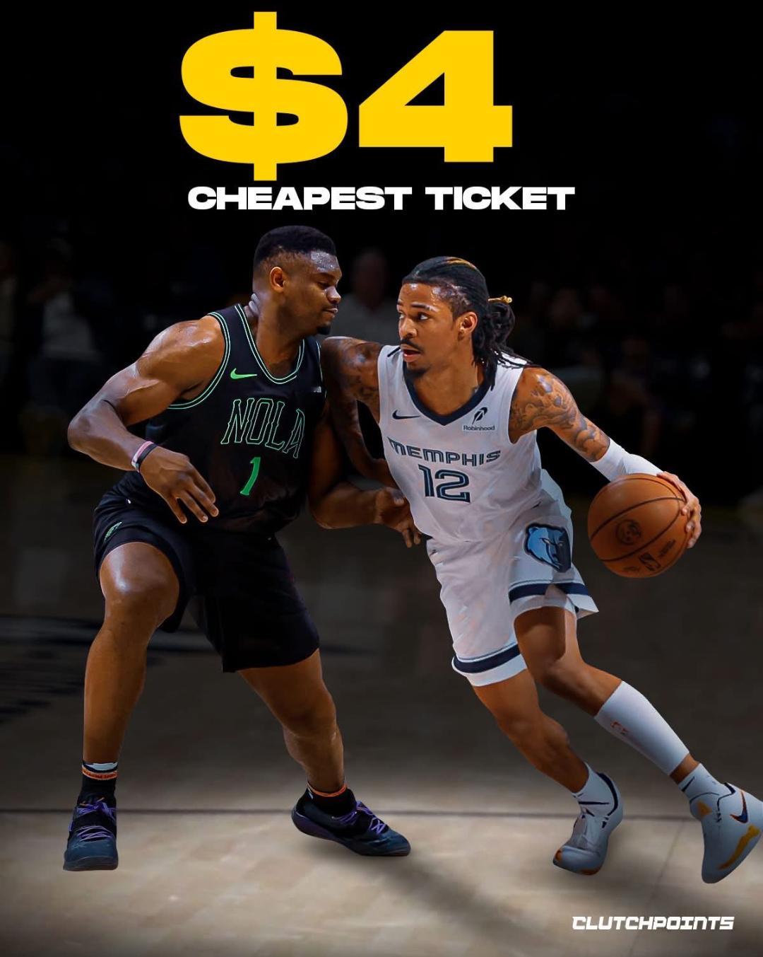 灰熊主场战鹈鹕的揭幕战中 最低票价仅需4美元就能观看。